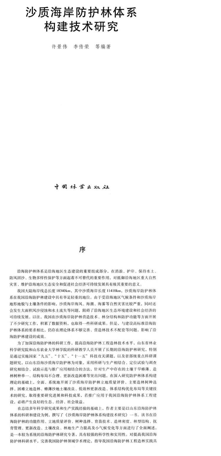 沙质海岸防护林体系构建技术研究 中国林业出版社
