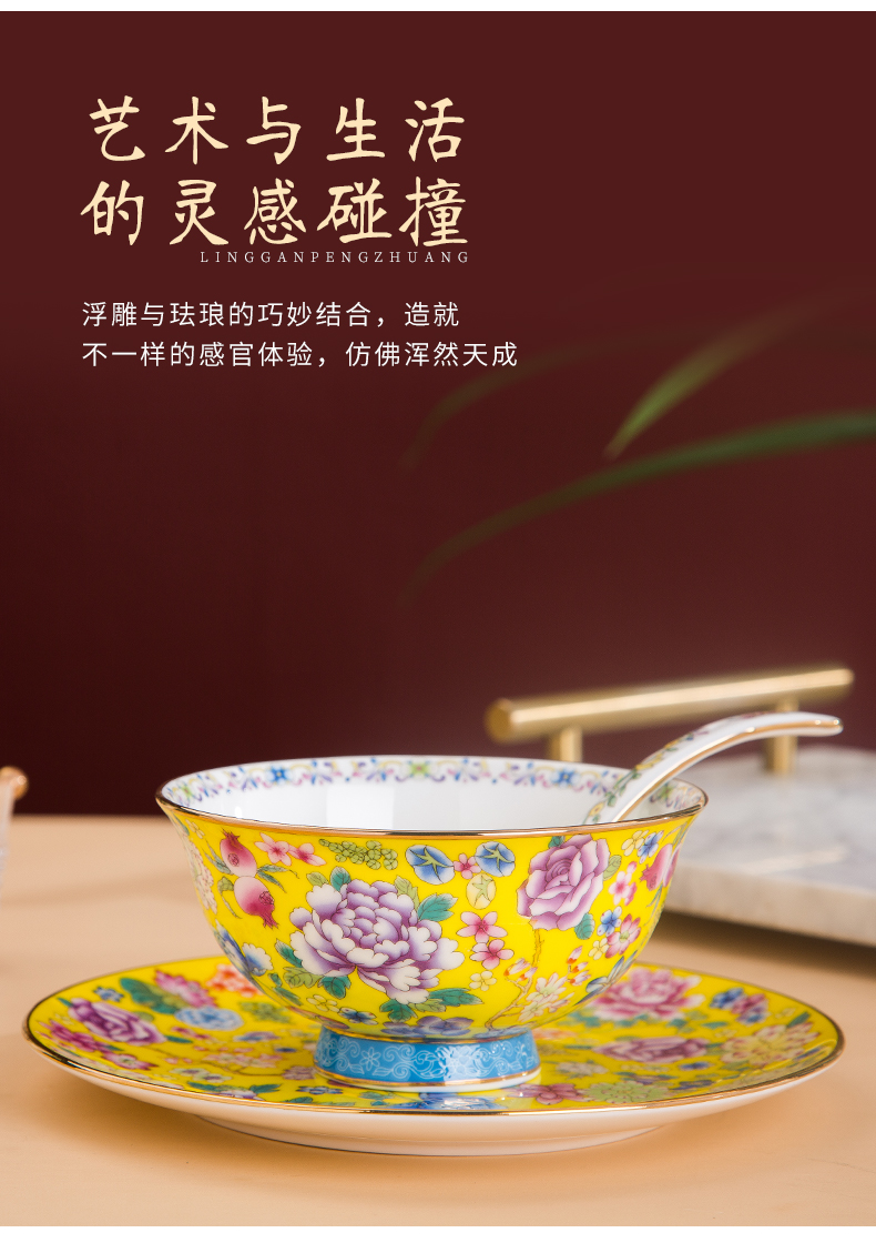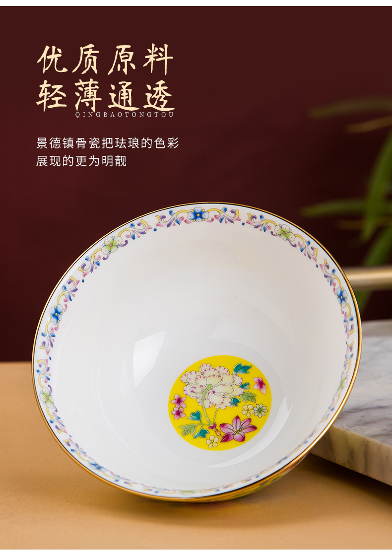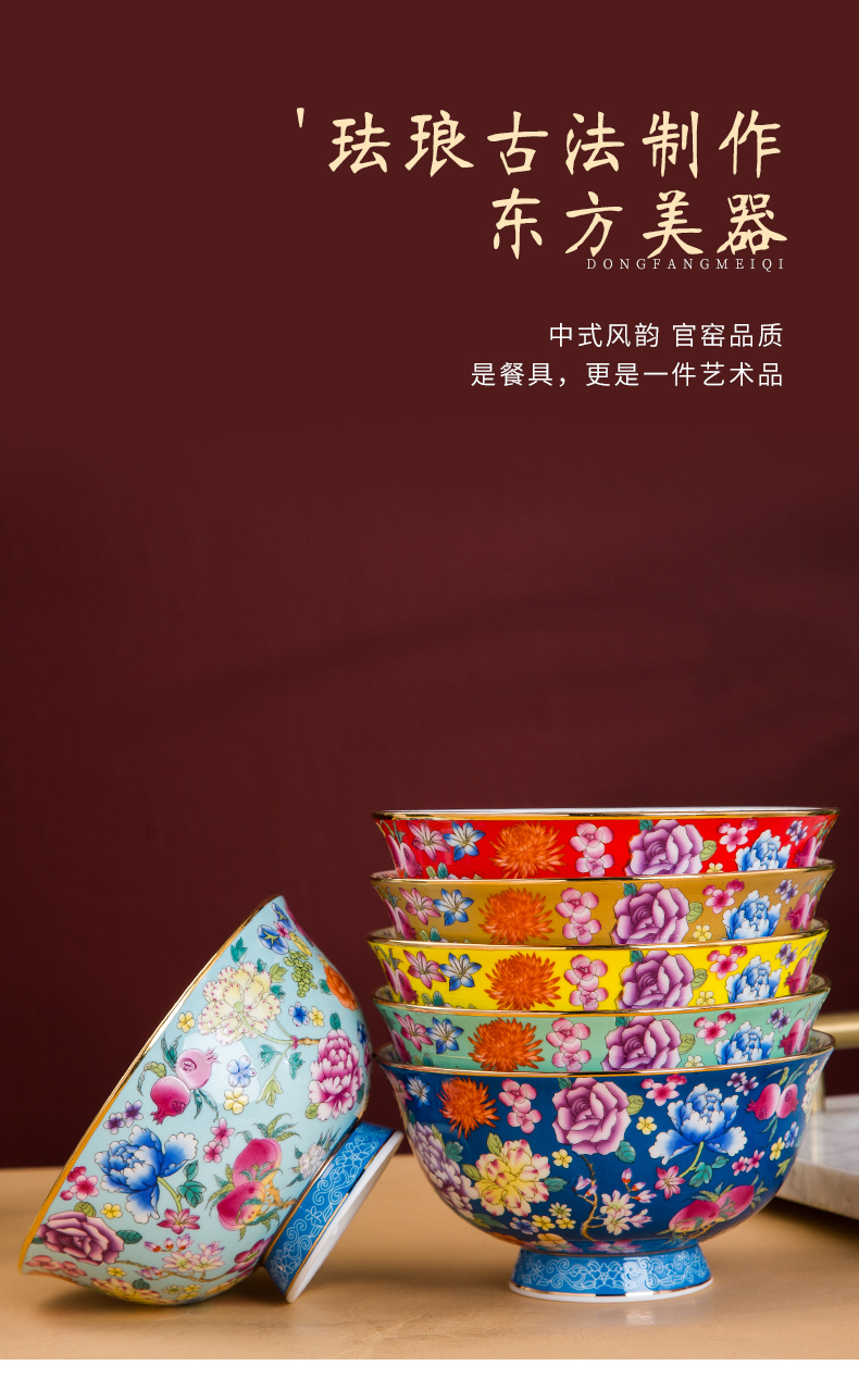 戴德生活馆描金万花珐琅彩饭碗单个高脚防烫中式宫廷景德镇骨瓷餐具