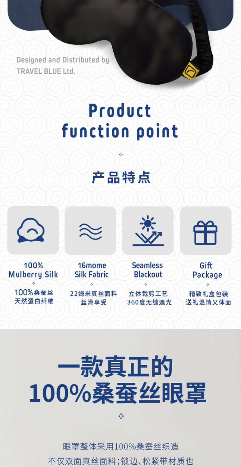 蓝旅(TRAVEL BLUE) 桑蚕丝眼罩 遮光透气桑蚕丝 457