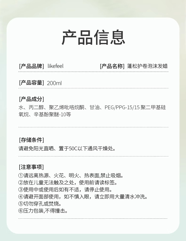 likefeel泡沫发蜡蓬松定型摩斯