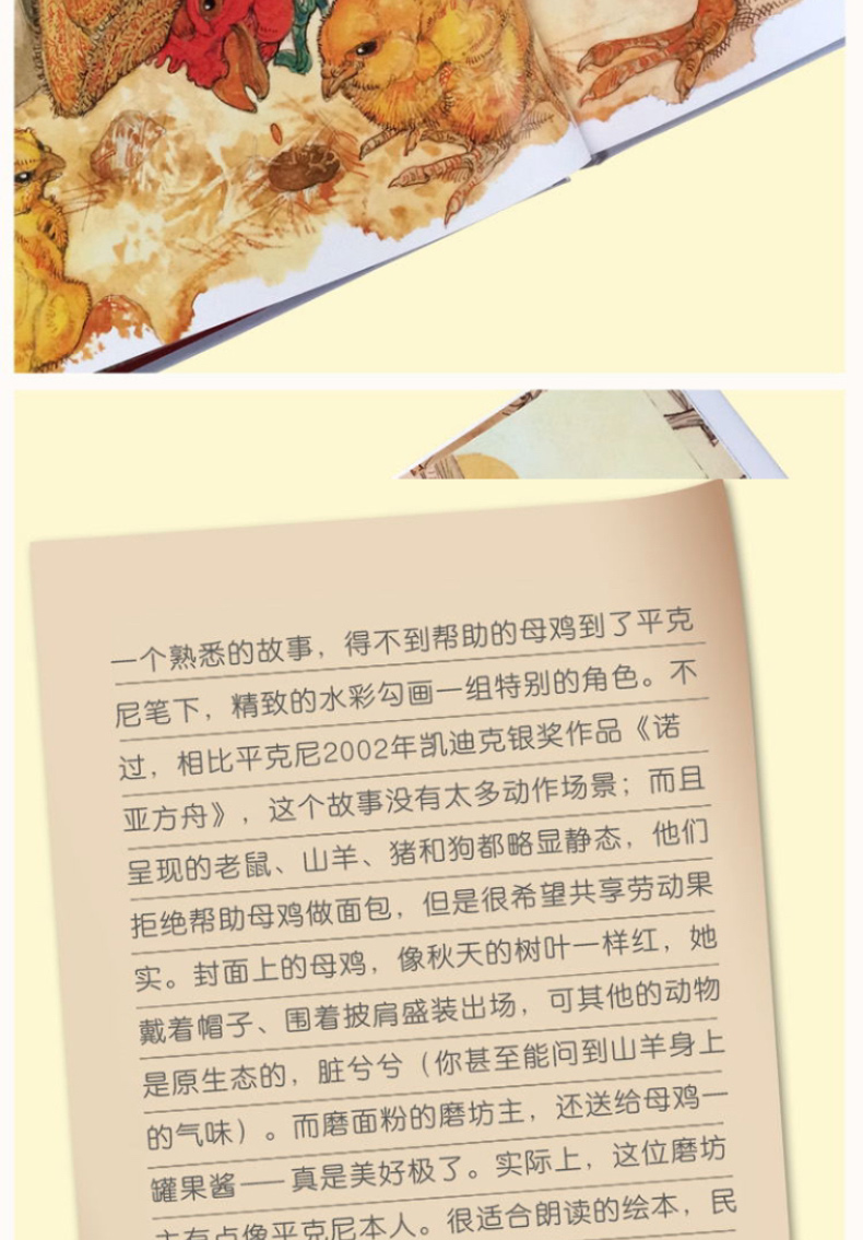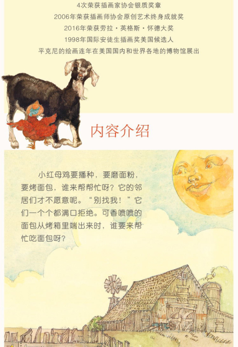 谁来帮小红母鸡播种、磨面、烤面包?她的邻居们都嫌麻烦。“别找我”,每一个请求他们都这么回答。可热腾腾、香喷喷的蓬松面包从烤箱里取出来时,谁来帮忙吃呢? 如果你在给孩子或学生找一本关于责任和信任的书,这本书就是! 经典就是经典,之所以恒久,因为讲出了好故事。不付出努力,怎么会有回报或者成绩呢?