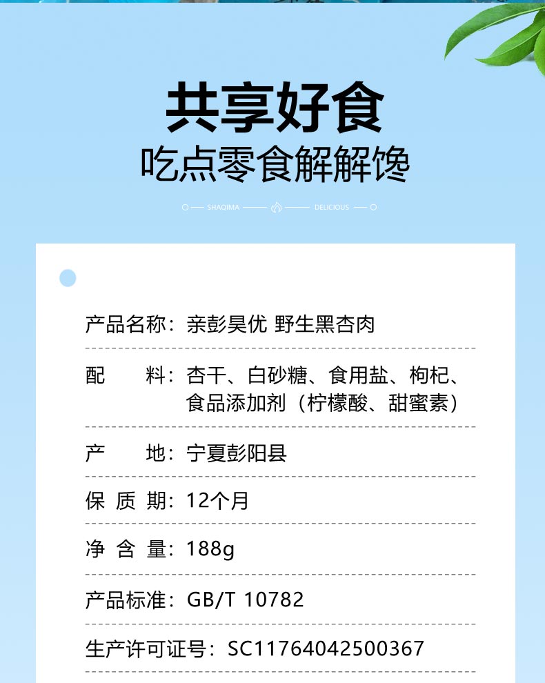 亲彭昊优彭阳黑杏脯188g(KBJ)(仅限福建省内配送,满400元包邮)
