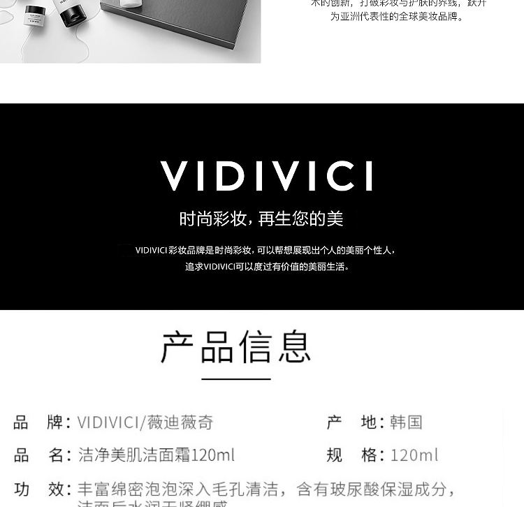 VIDIVICI薇迪薇奇韩国进口 氨基酸泡沫洗面奶女神洁面乳120ml/支