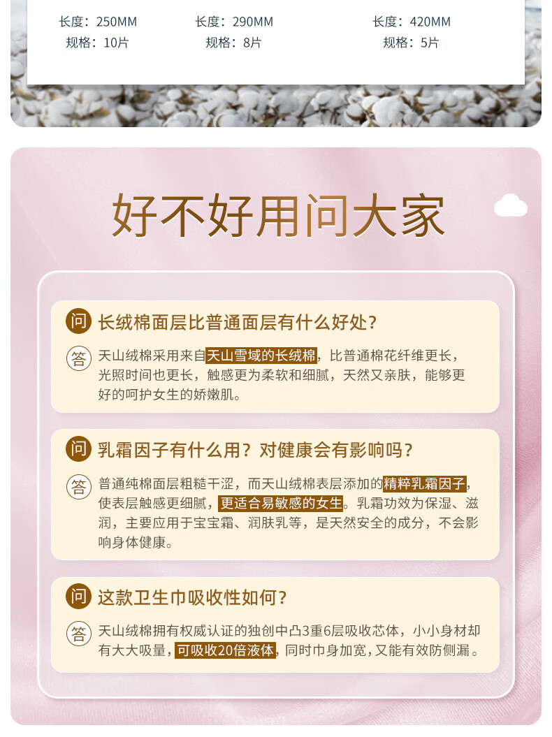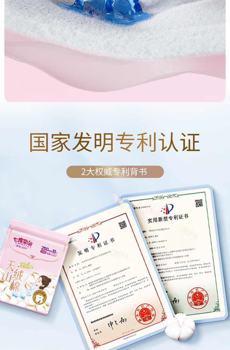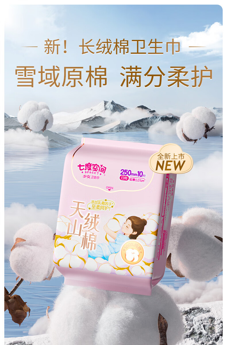 七度空间 天山绒棉系列极薄纯棉日用250mm卫生巾10片装 QRD6110(单包)