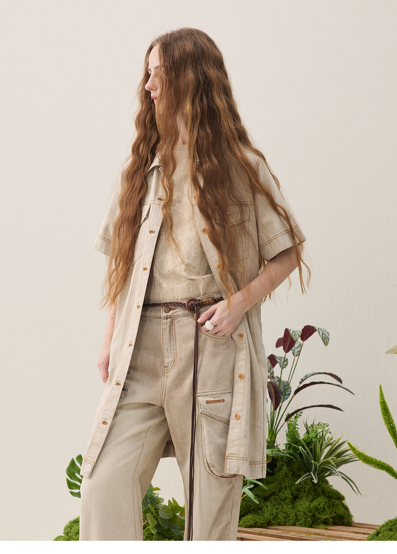 谜底花色衬衣长袖2026春季新品原创彩铅印花艺术衬衫女261MC0211