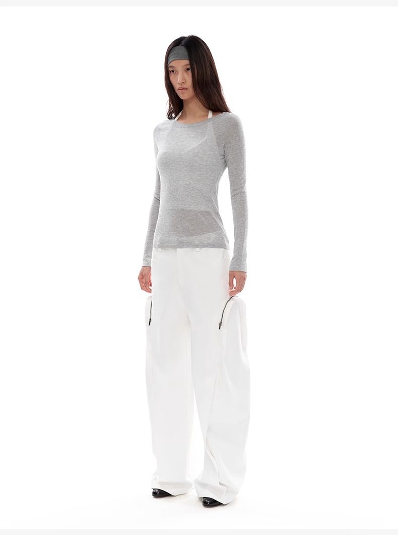1.15上午10点8.8折!NUTH圆领褶皱不对称修身收腰短袖t恤女 白色/灰色