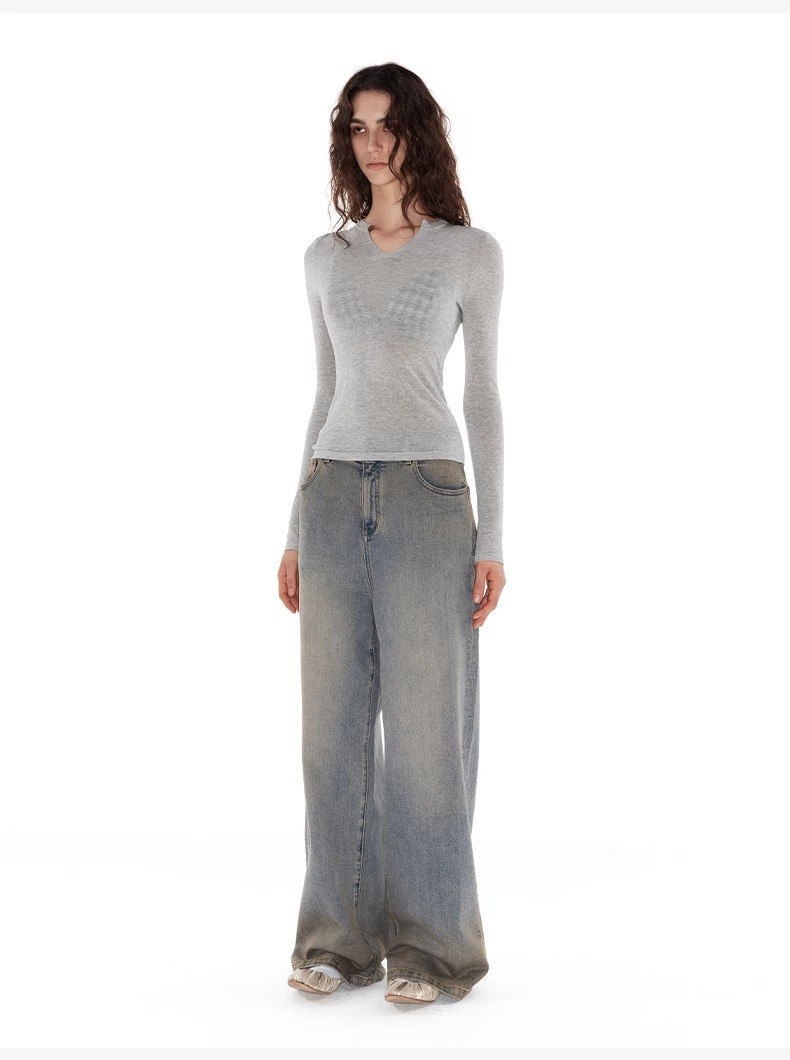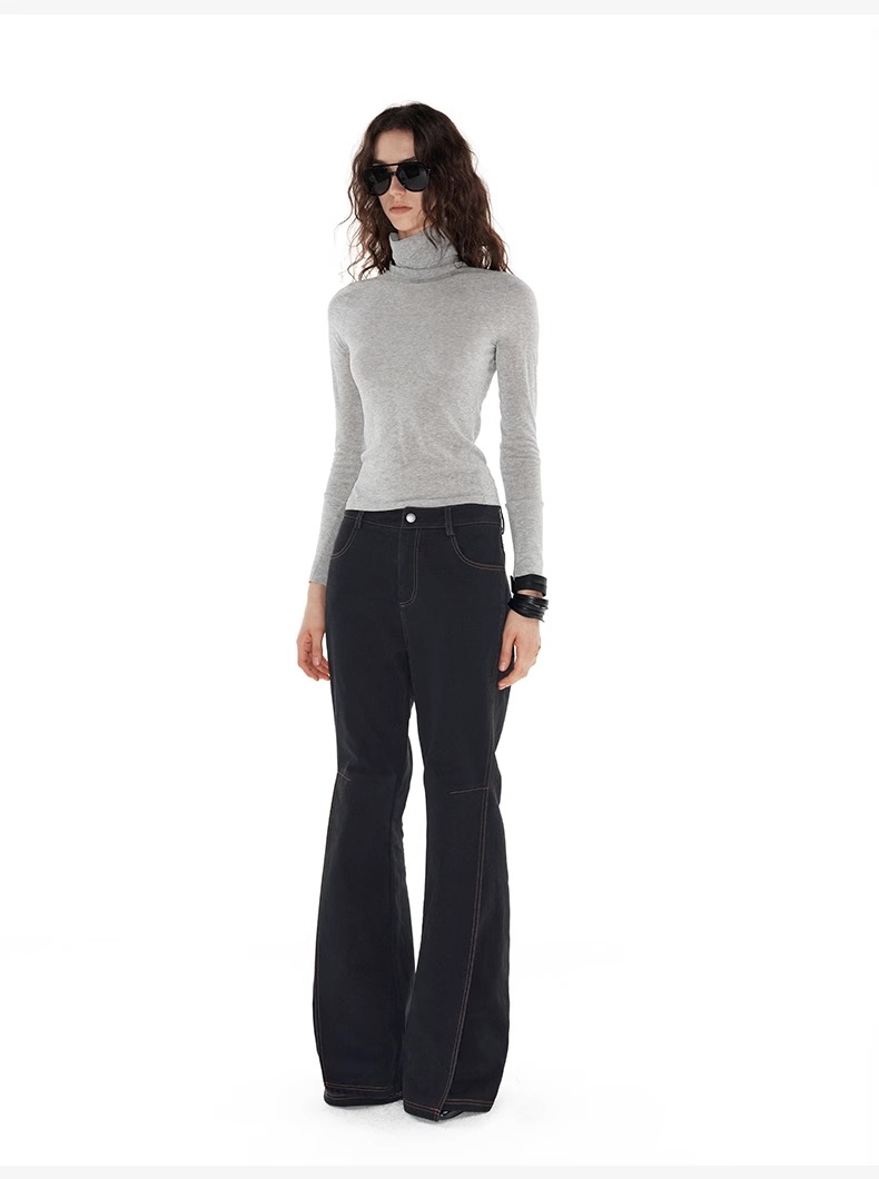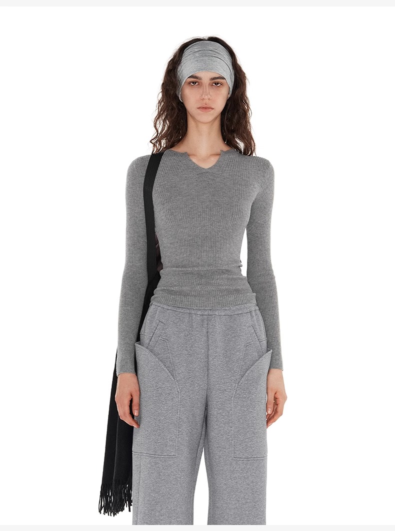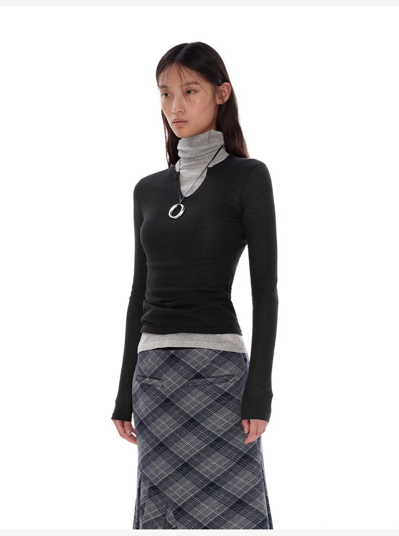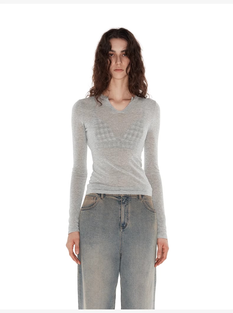 NUTH 亲肤半透长袖针织衫女薄款弹力修身打底针织上衣