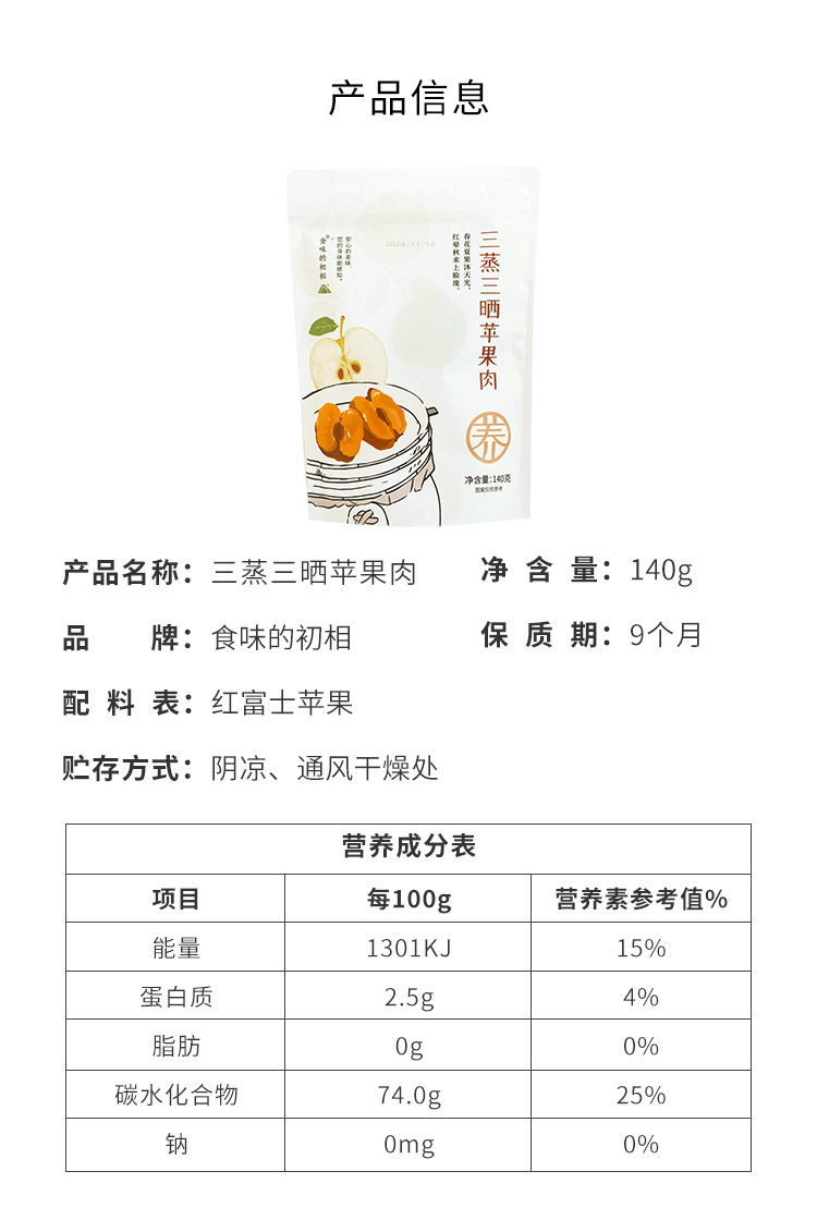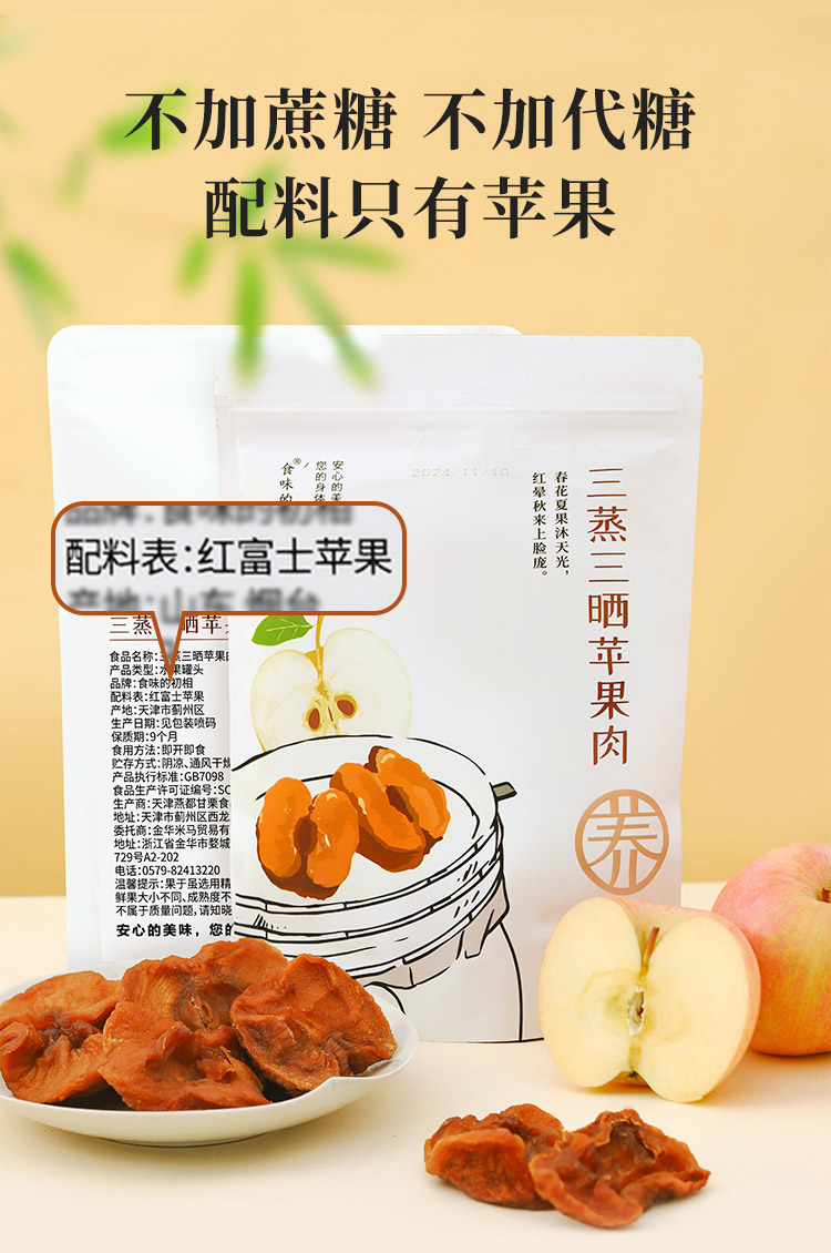 食味的初相三蒸三晒苹果肉苹果干140g*3袋/5袋