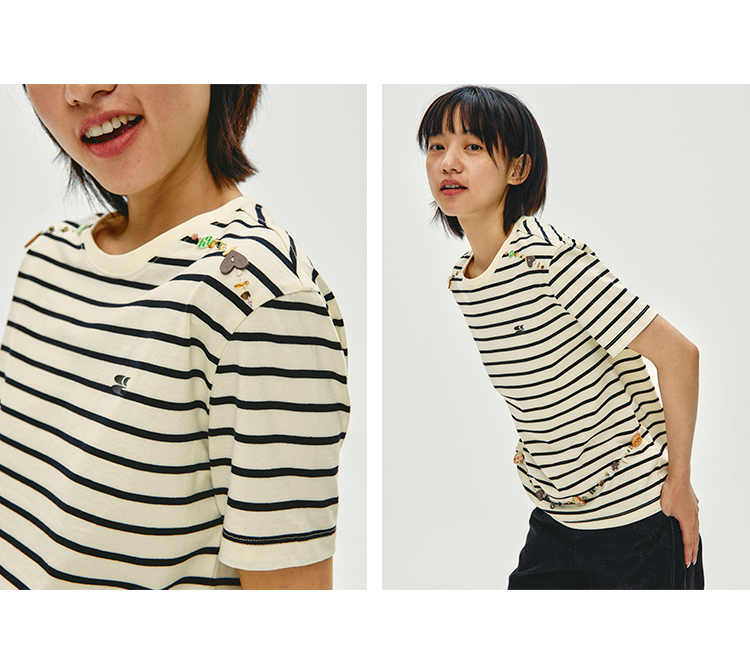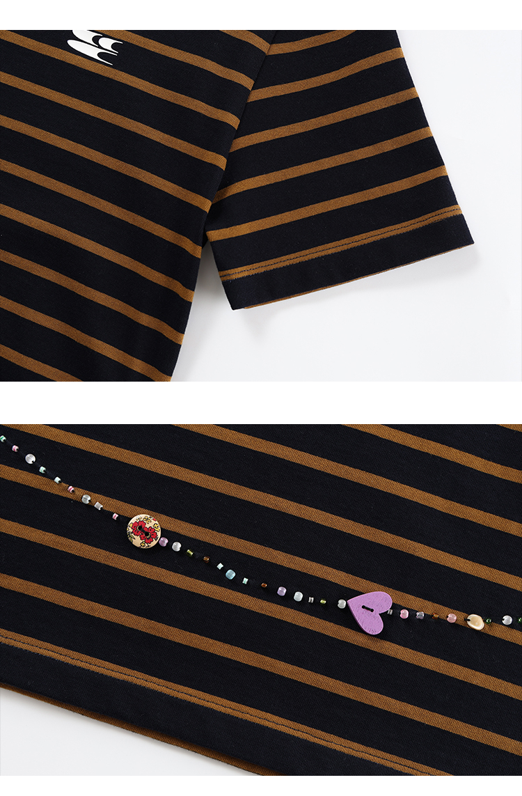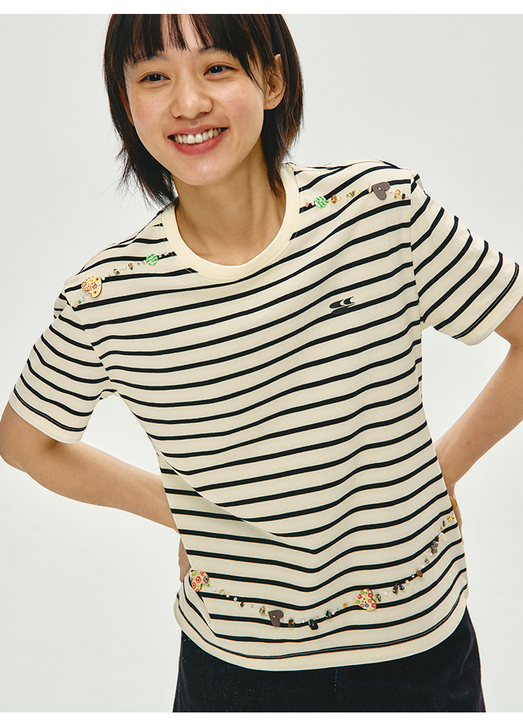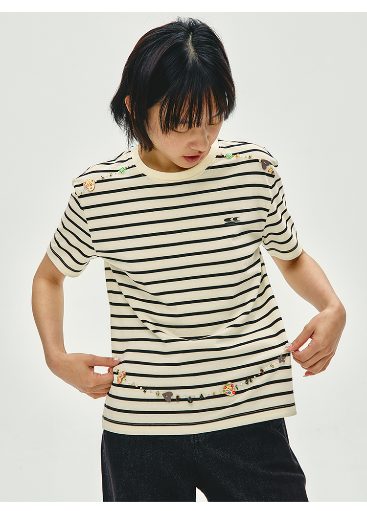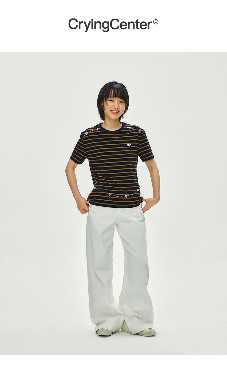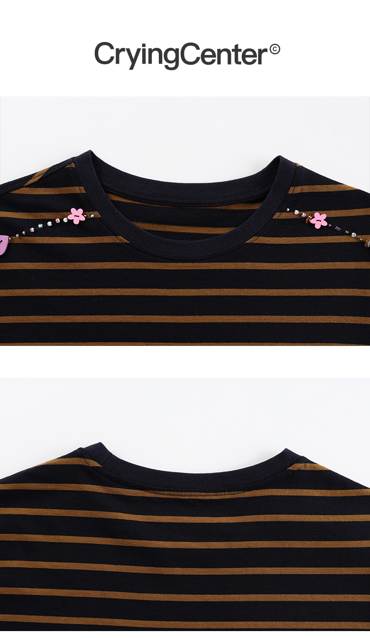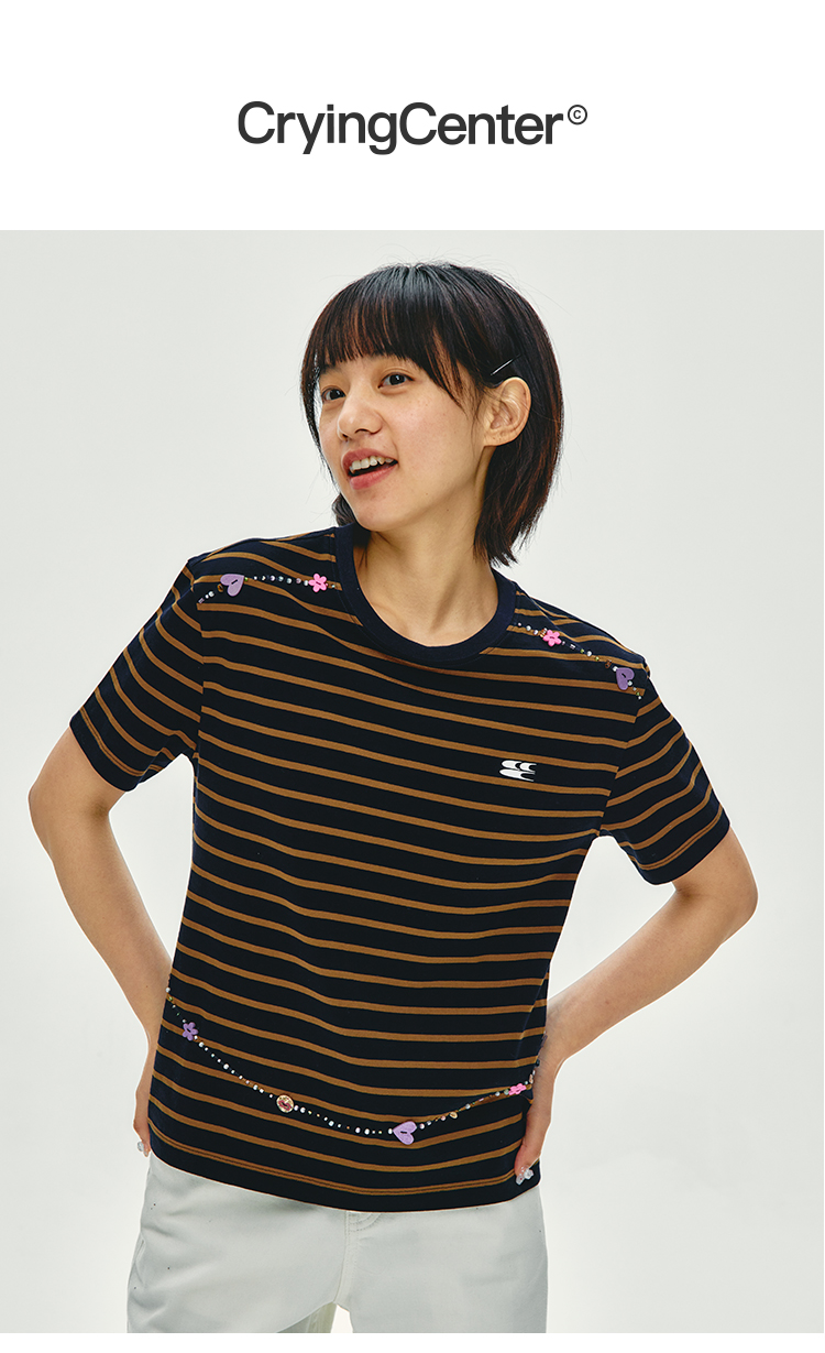 CryingCenter 女款正肩圆弧钉珠条纹短袖 哭喊中心