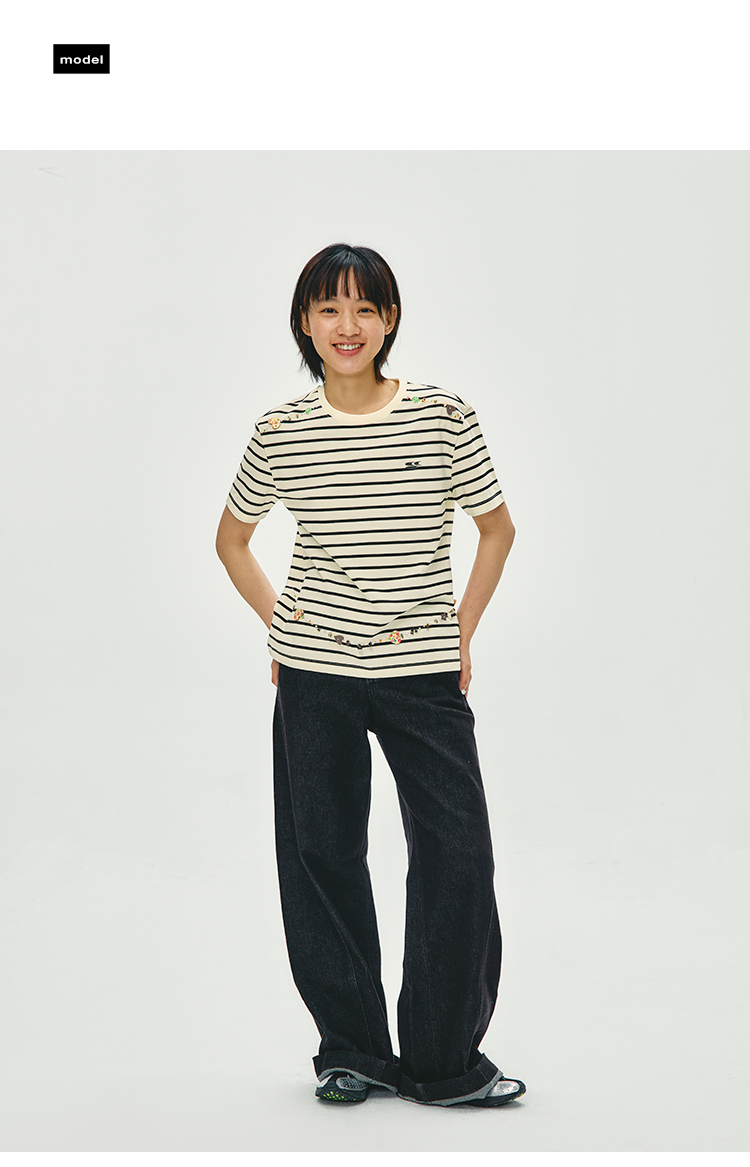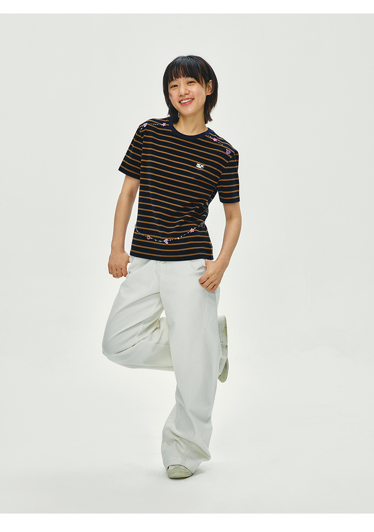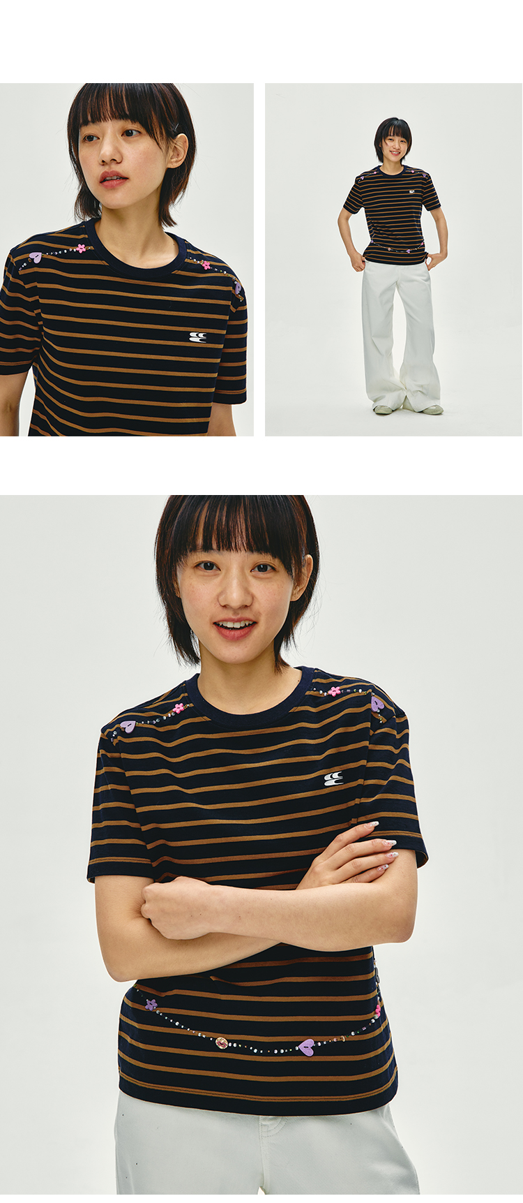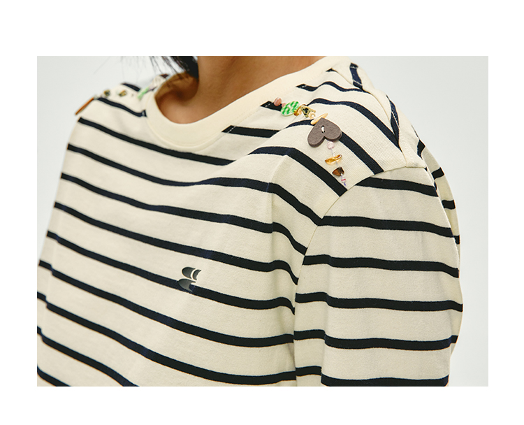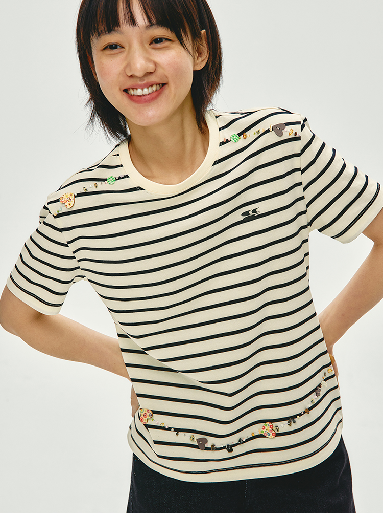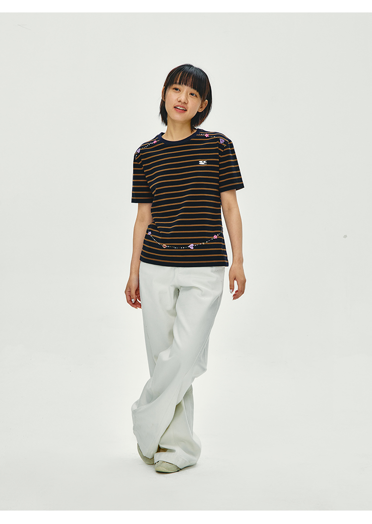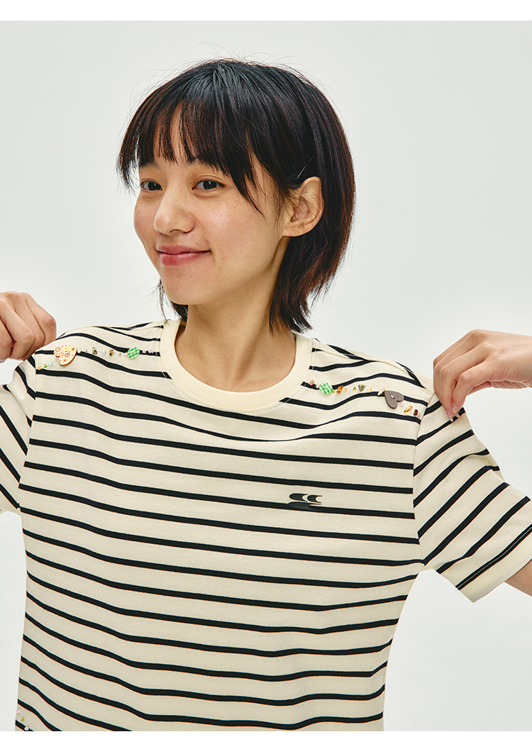 CryingCenter 女款正肩圆弧钉珠条纹短袖 哭喊中心