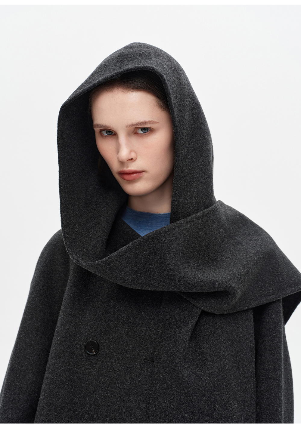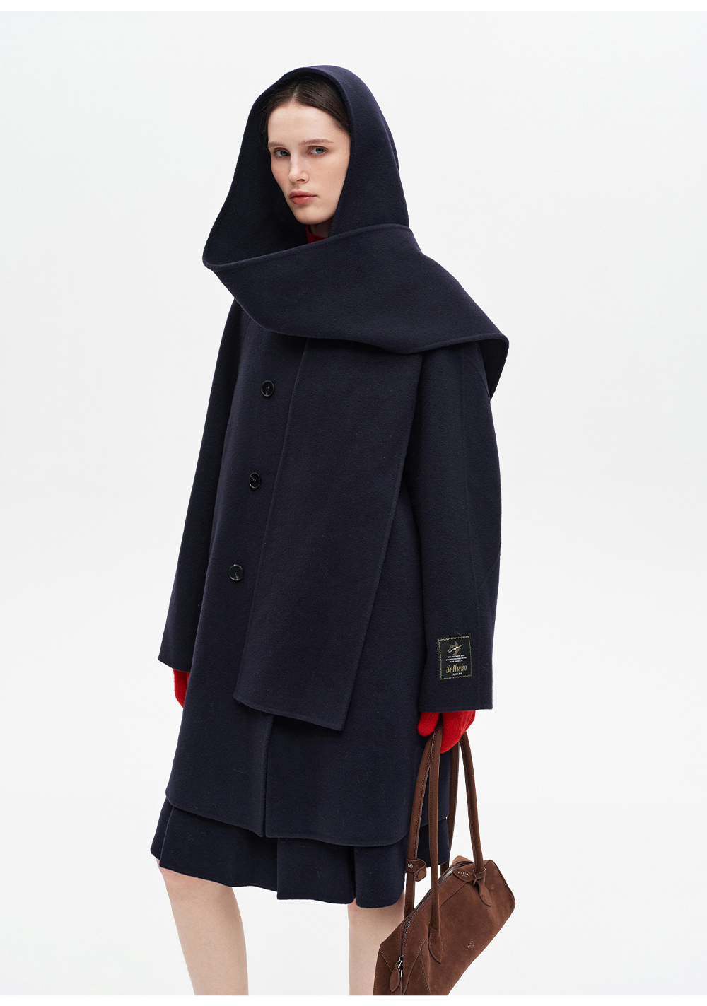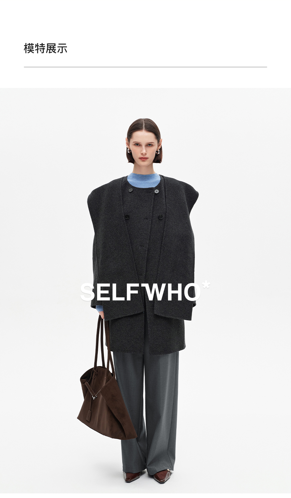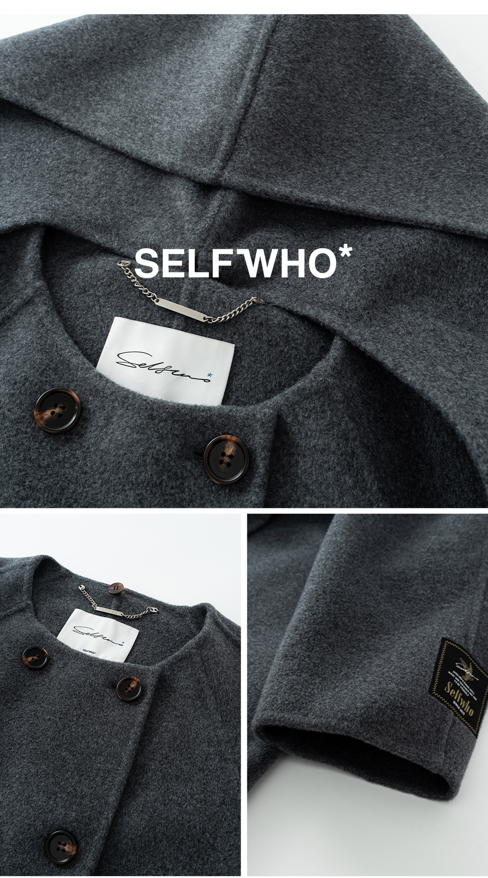 SELFWHO绵羊毛可拆卸连帽双面呢外套女25冬新款斗篷披肩毛呢大衣