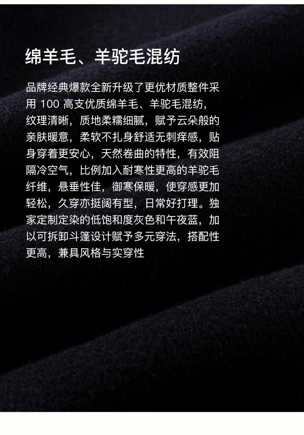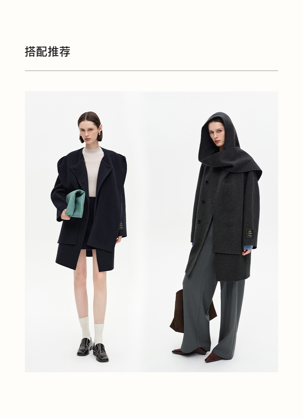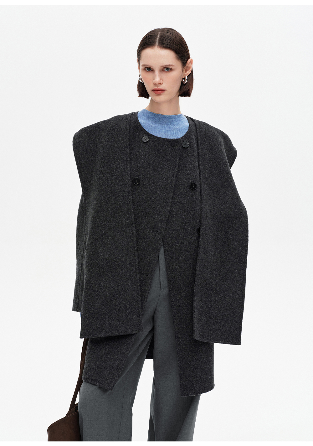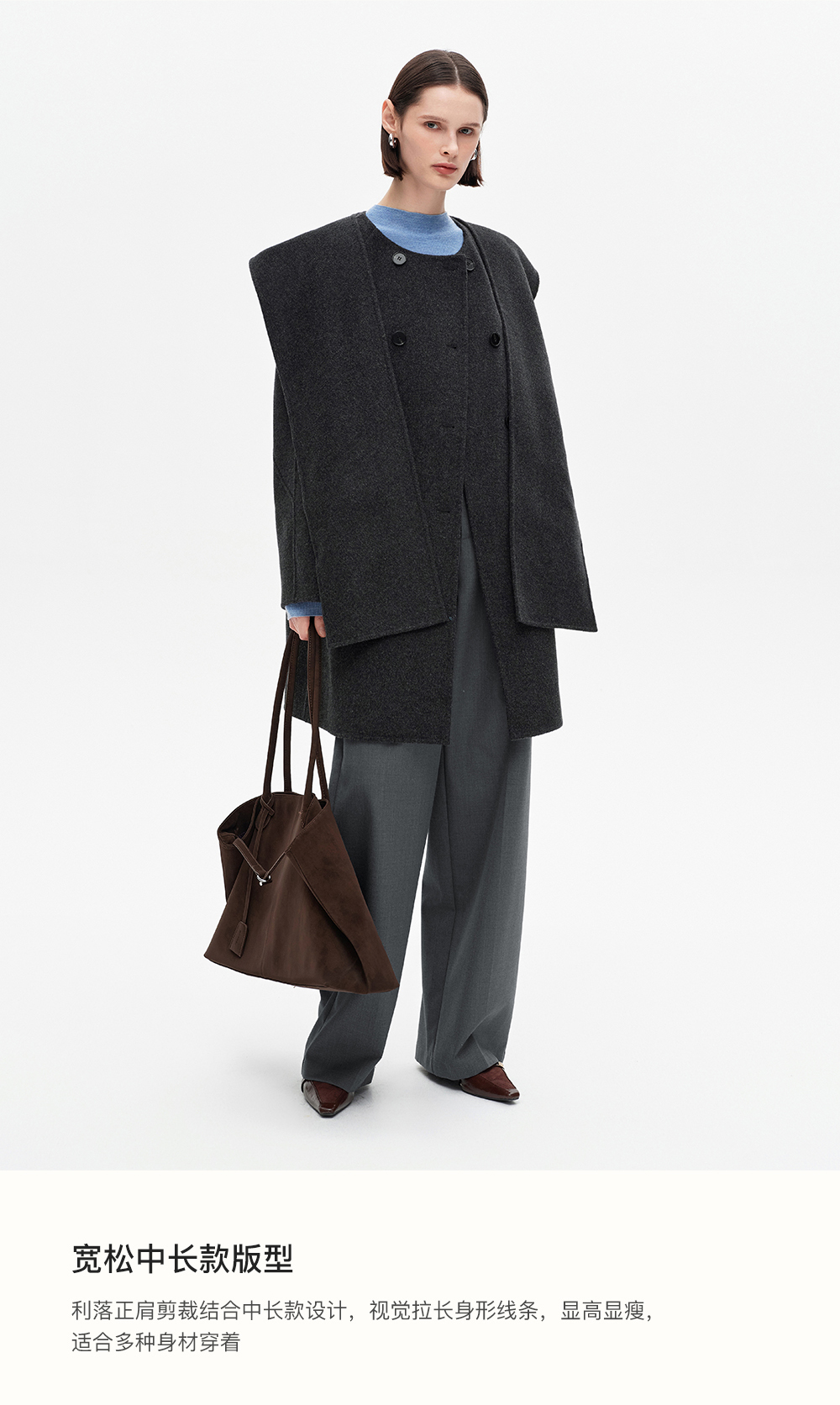 SELFWHO绵羊毛可拆卸连帽双面呢外套女25冬新款斗篷披肩毛呢大衣