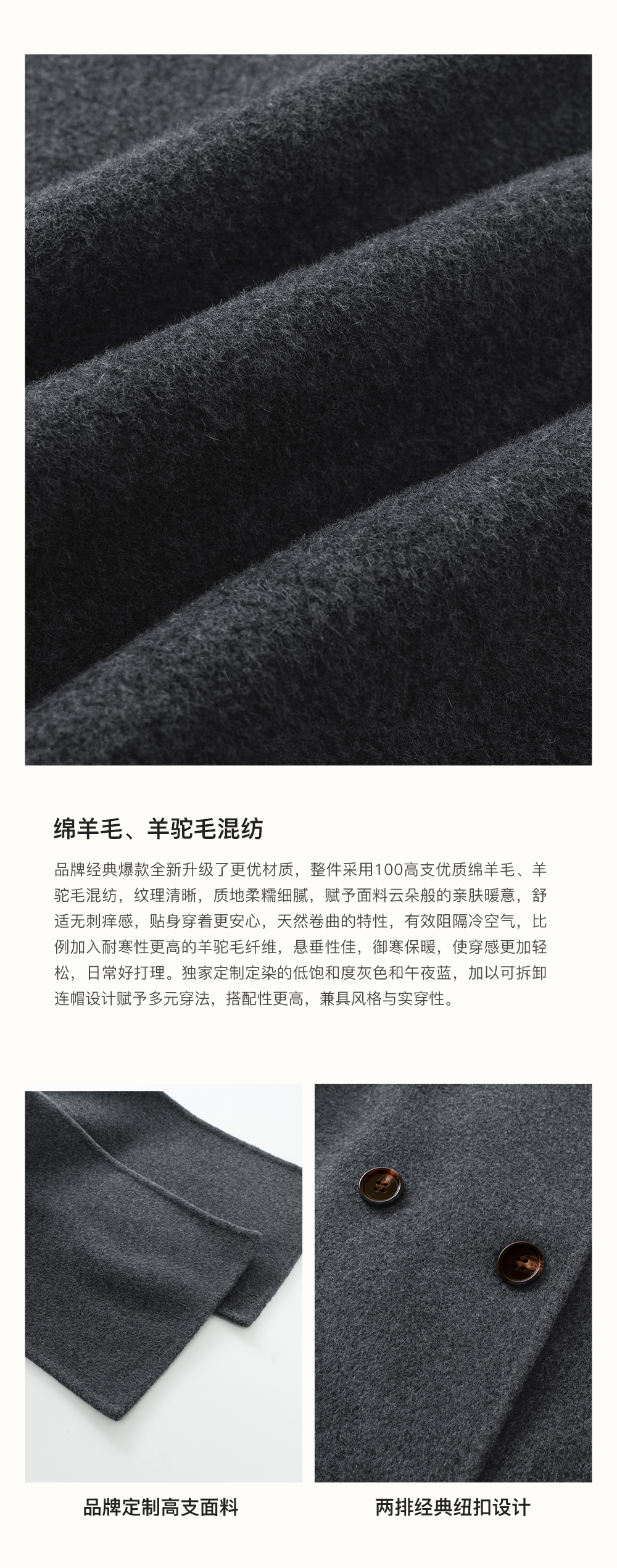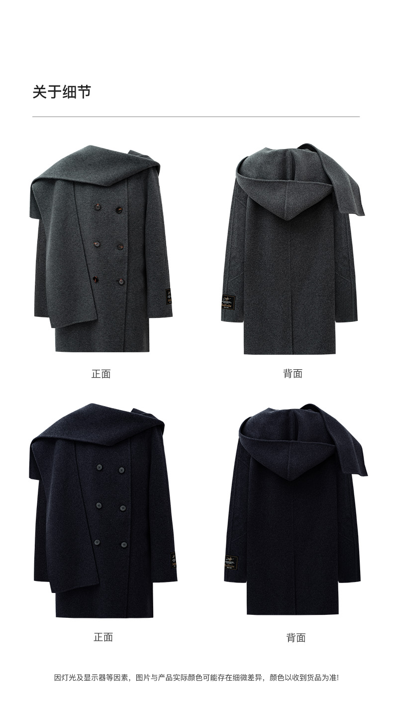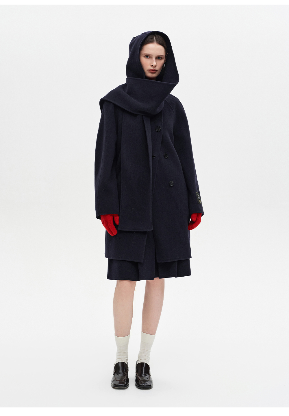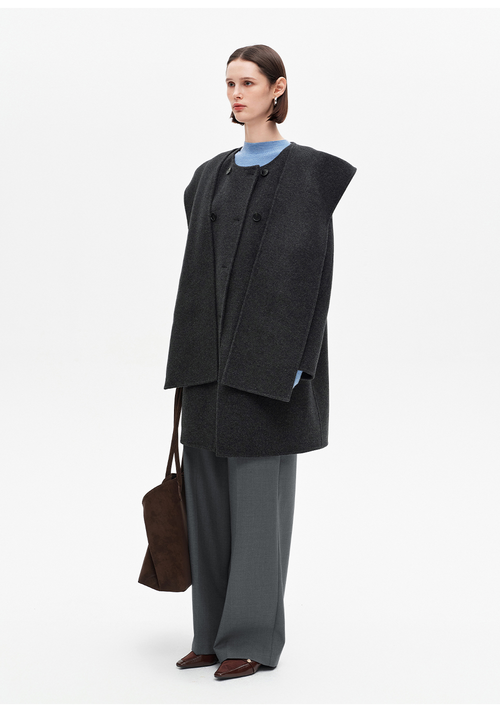 SELFWHO绵羊毛可拆卸连帽双面呢外套女25冬新款斗篷披肩毛呢大衣