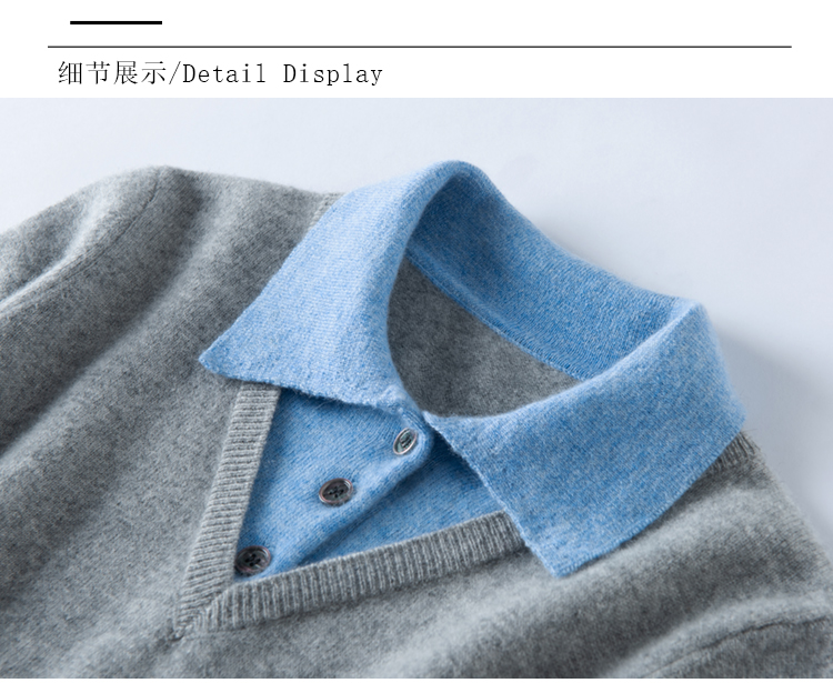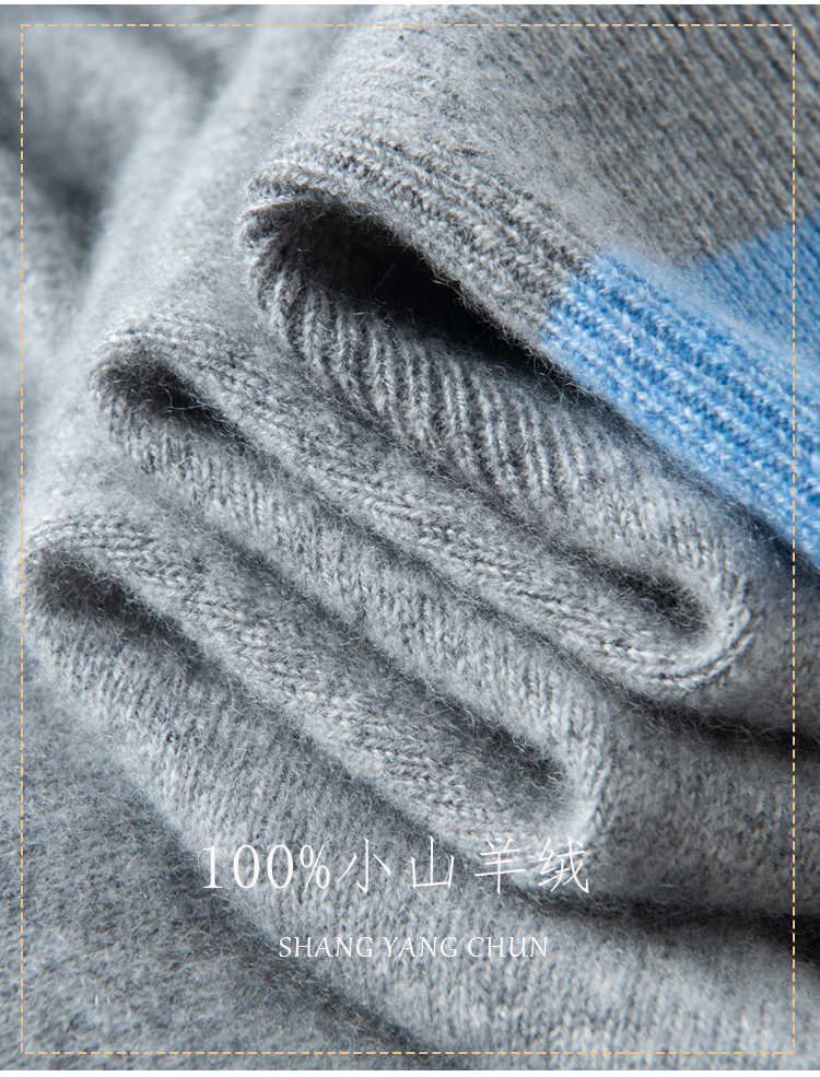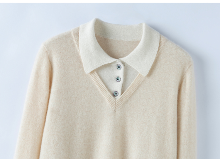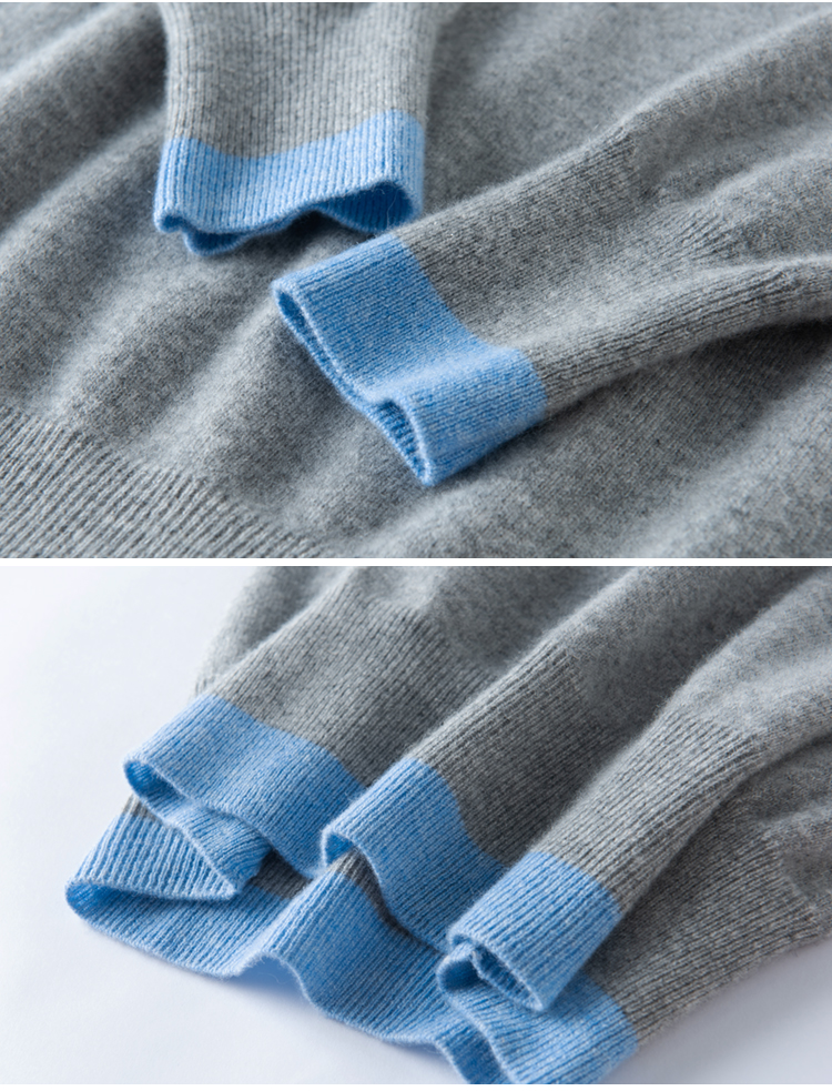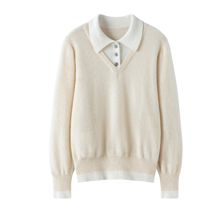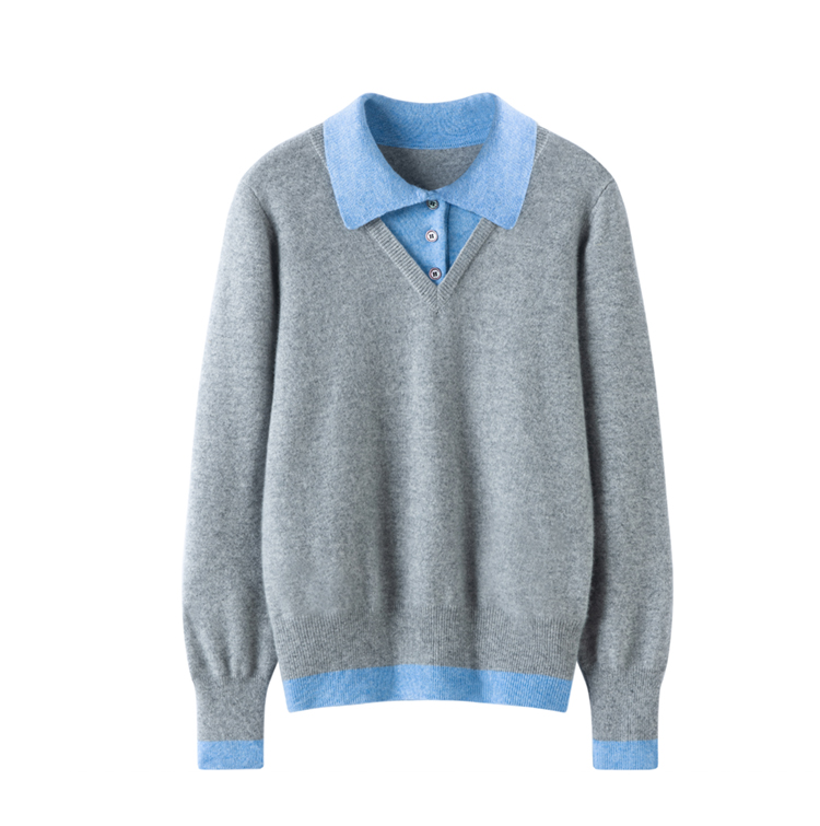 【维多利亚】100小山羊绒拼色设计假两件毛衣女BABY25044