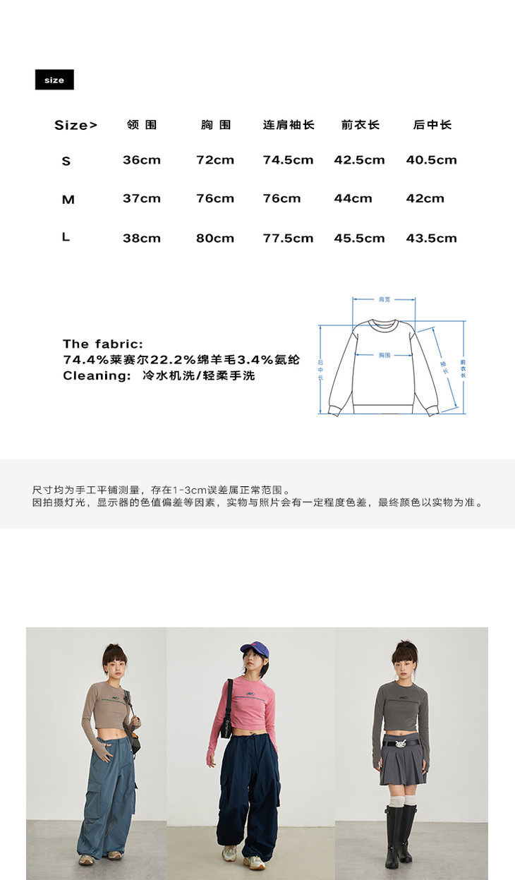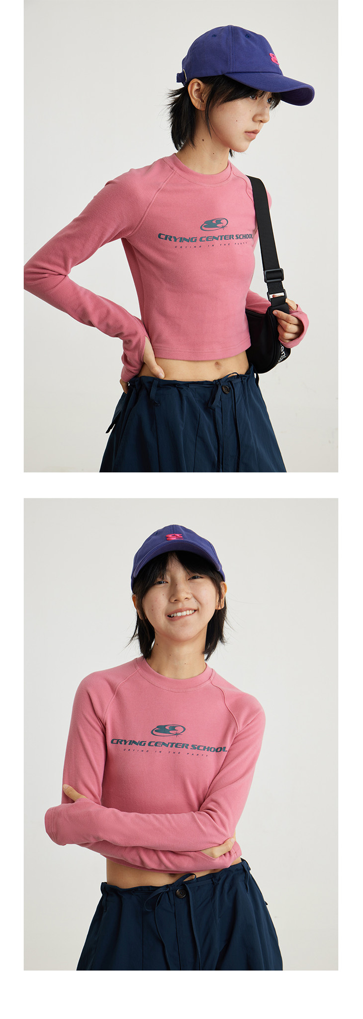 CryingCenter 灰咖粉美式印花紧身短款紧身长袖tee 哭喊中心