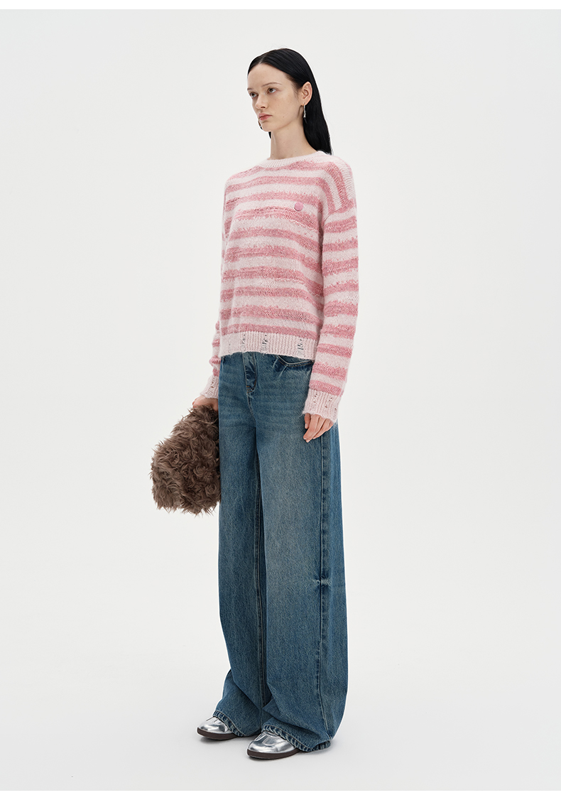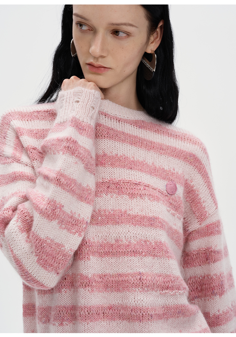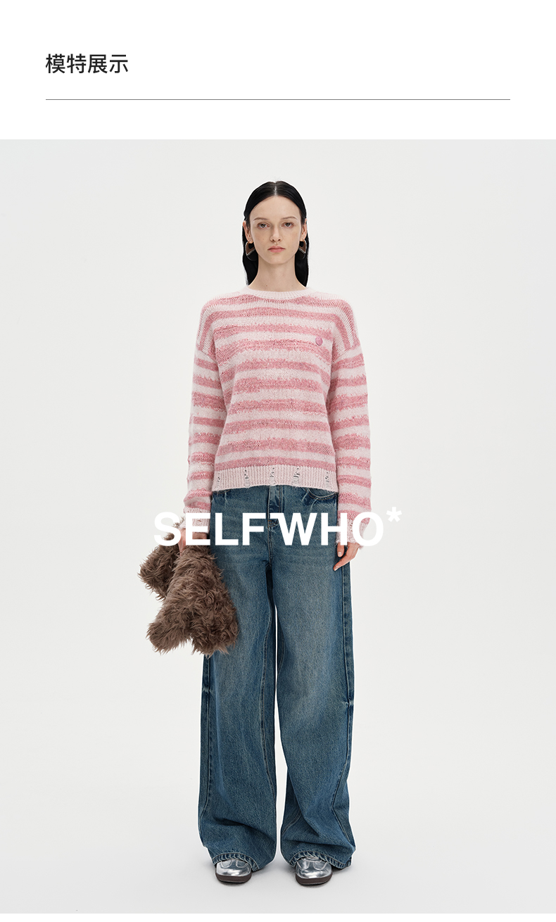 SELFWHO丝光马海毛羊毛混纺毛衣秋季女2024新款慵懒套头针织上衣