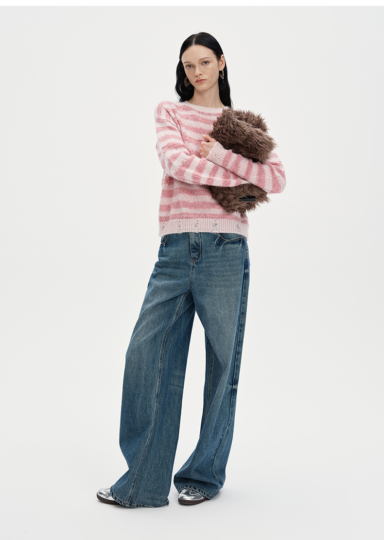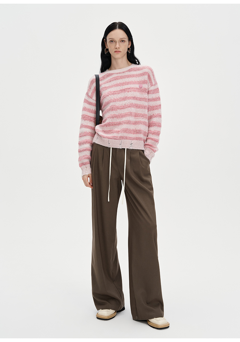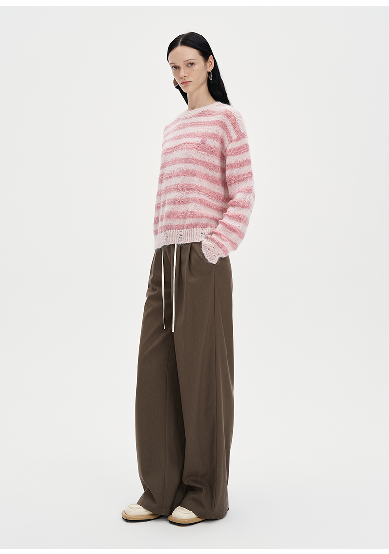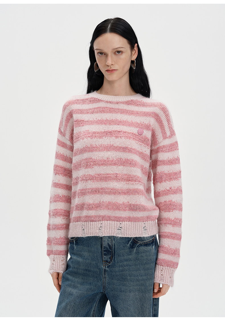 SELFWHO丝光马海毛羊毛混纺毛衣秋季女2024新款慵懒套头针织上衣