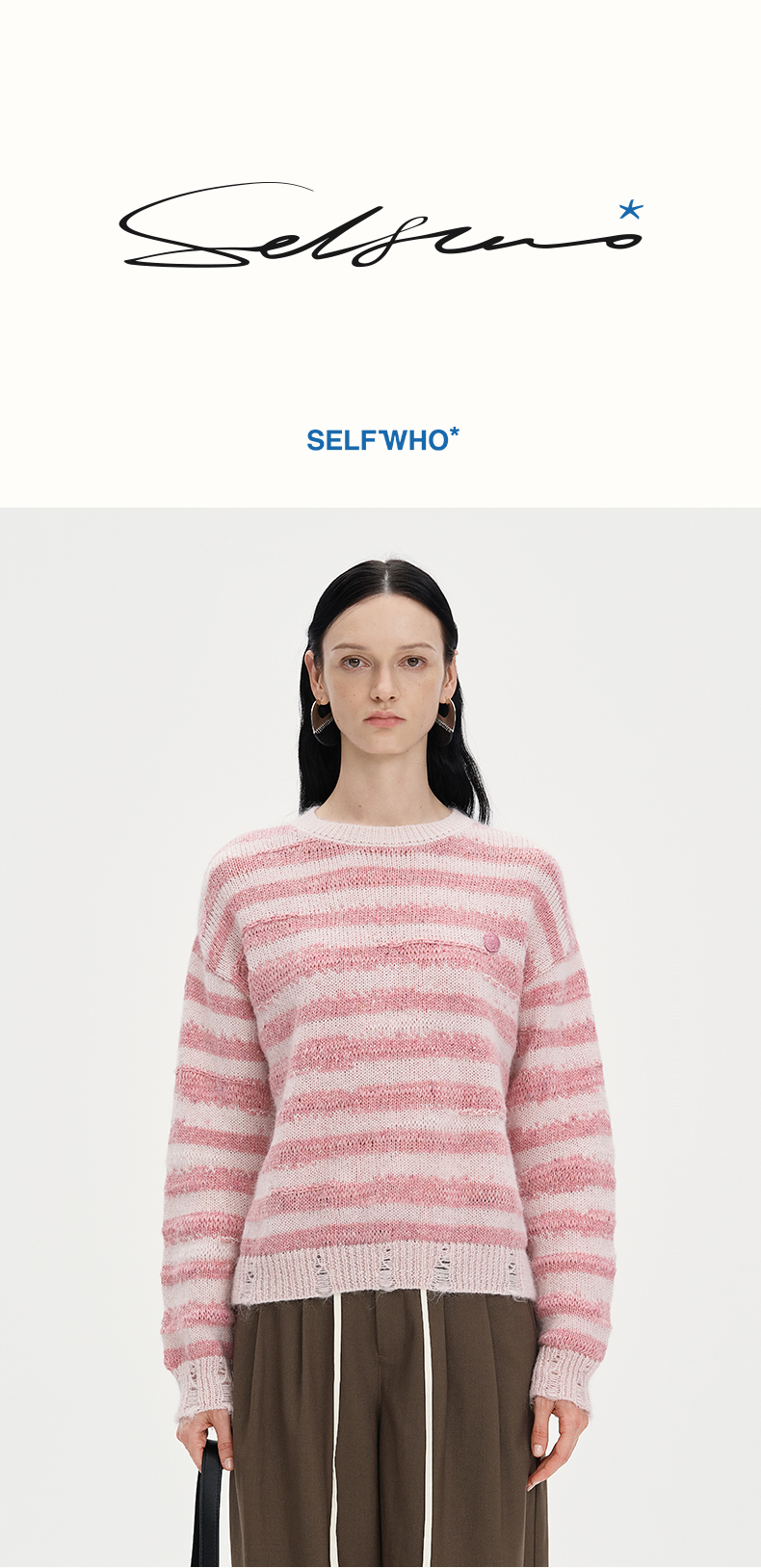 - SELFWHO——将街头文化融入高级成衣,以服装为载体,用廓形、解构设计和艺术意象探寻极致的生活方式。特立独行,知行合一,TO BE YOURSELF。