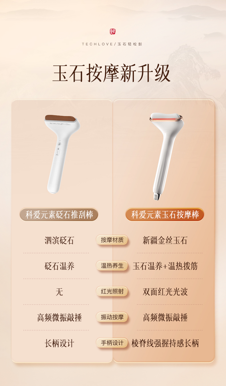 科爱元素玉石推刮棒 | 金丝玉导热快 三档热敷震动 舒缓紧绷肌肉