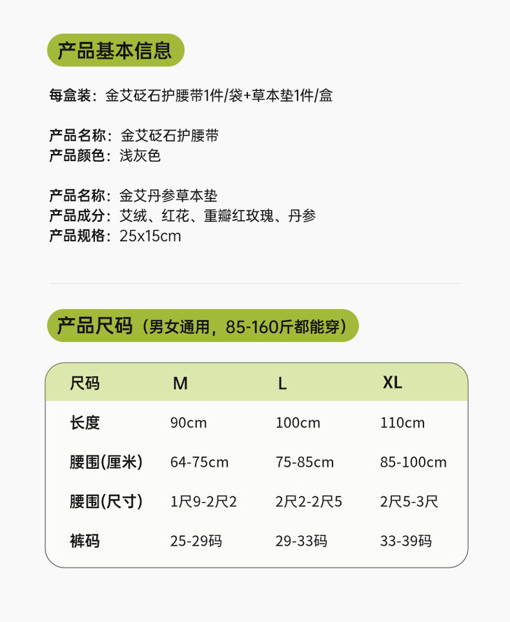 【限时秒杀,69.9/普通款,89.9/加热款)】金砭石护腰带 艾绒红花丹参 腰部护腰带女士热敷束腰带腰靠