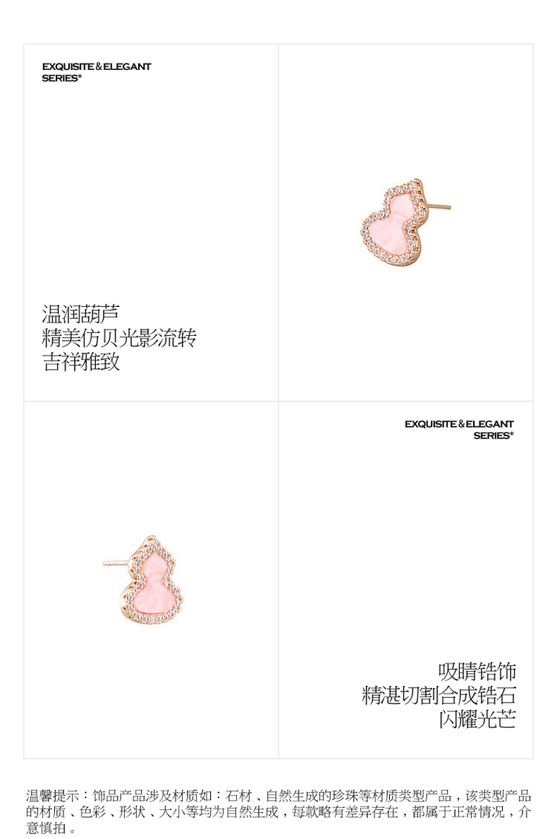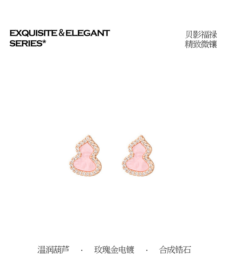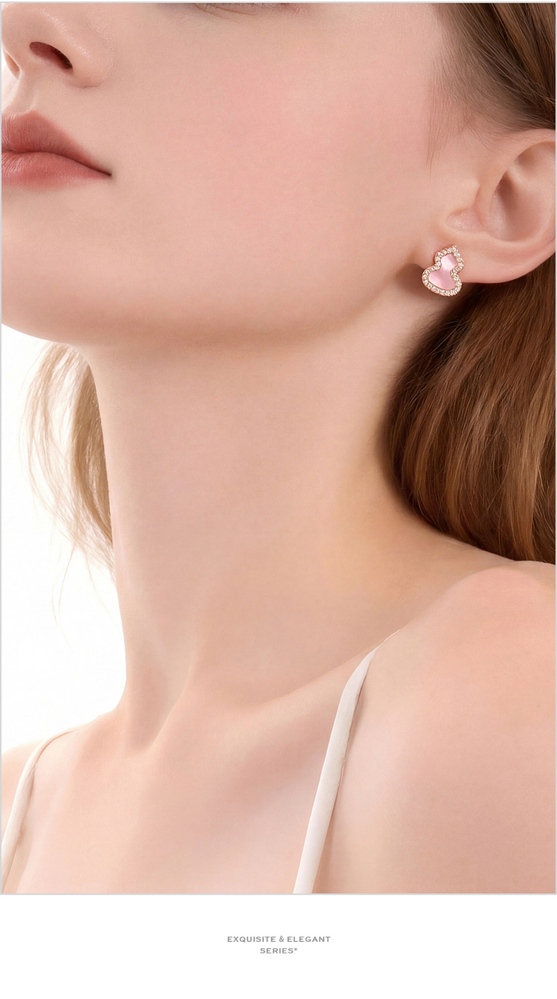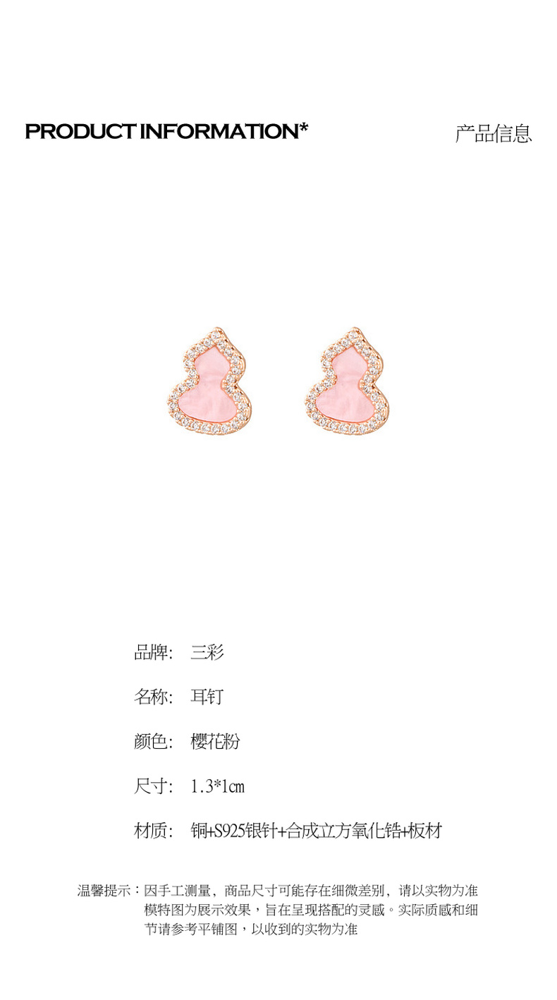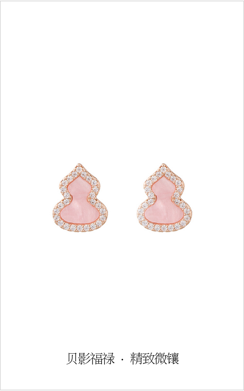 三彩2026新款玫瑰金葫芦耳钉耳饰轻奢锆石福禄吉祥小众复古气质女