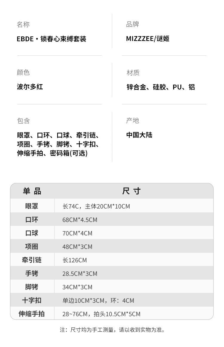 【情趣用品】谜姬 便携收纳锁春心束缚套装-礼盒or密码箱款