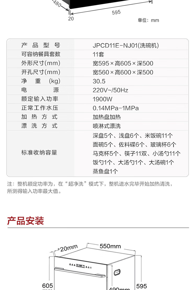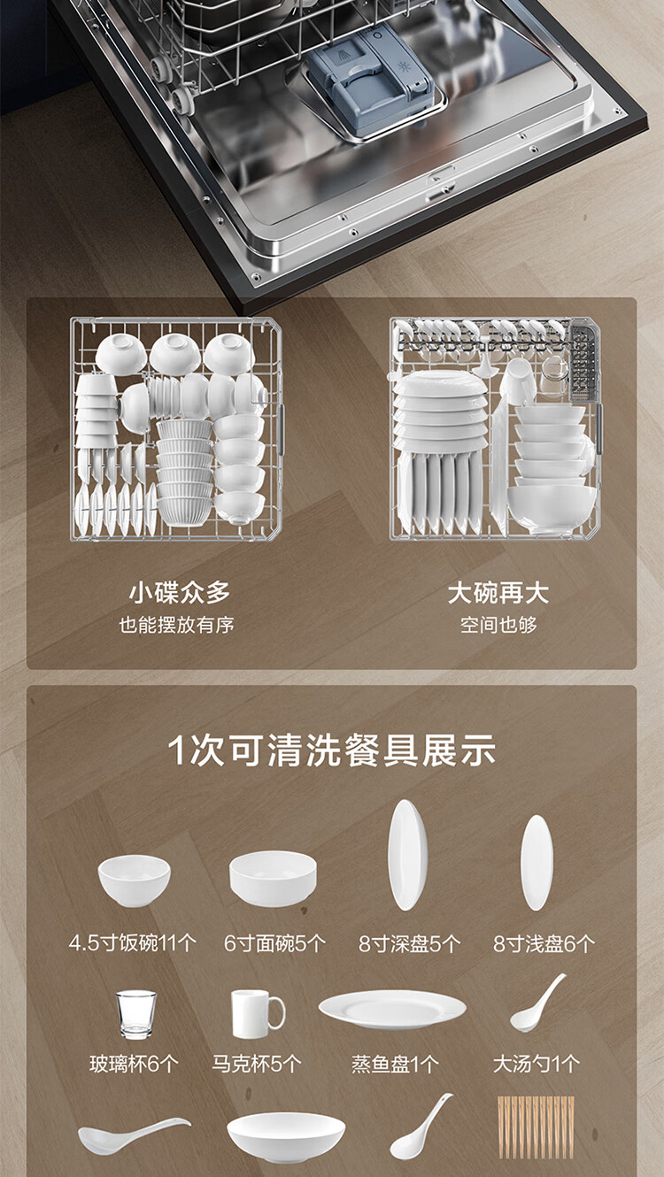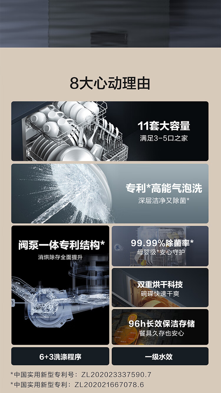 方太洗碗机嵌入式家用 高能气泡洗 11套大容量 全自动 热风烘干高温除菌 一级水效 30min超快洗 NJ01