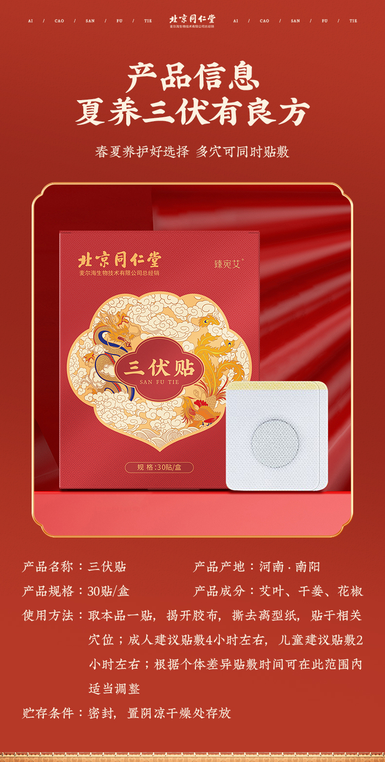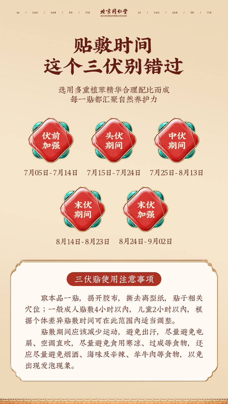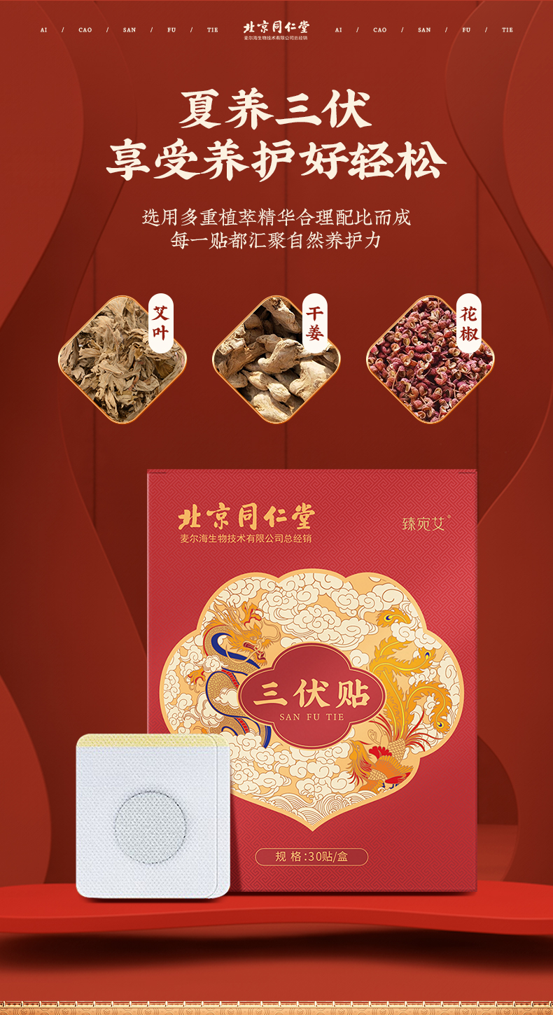 北京同仁堂/臻宛艾联名款三伏贴 夏季三九贴冬病夏治艾草贴三伏穴位贴艾灸贴