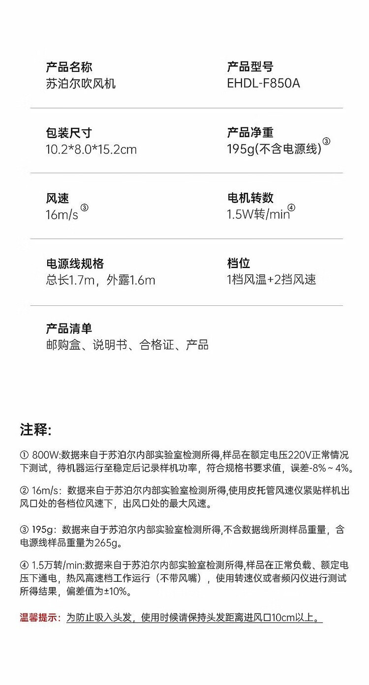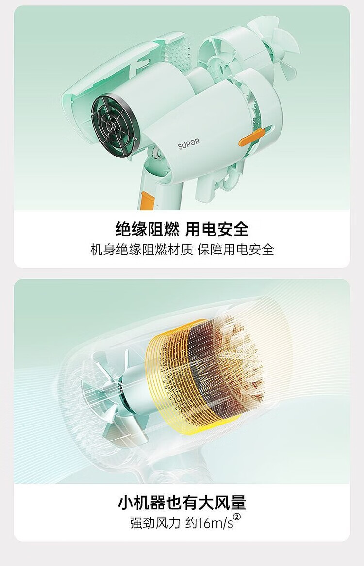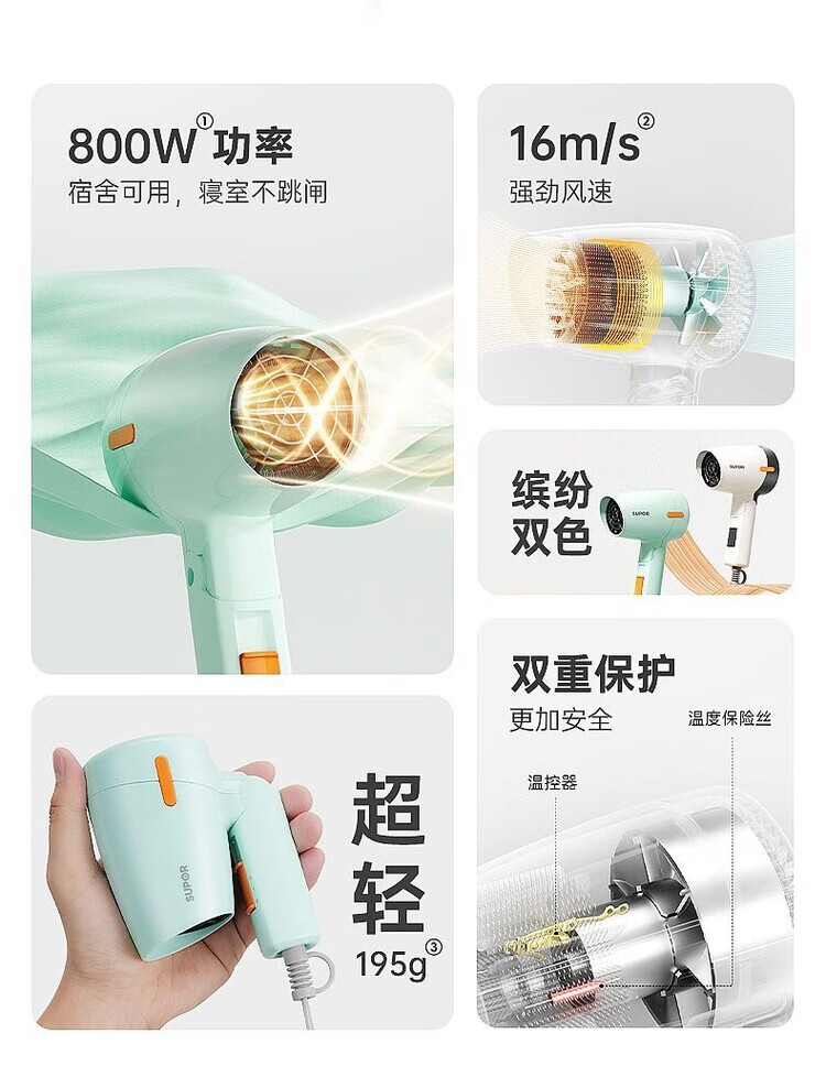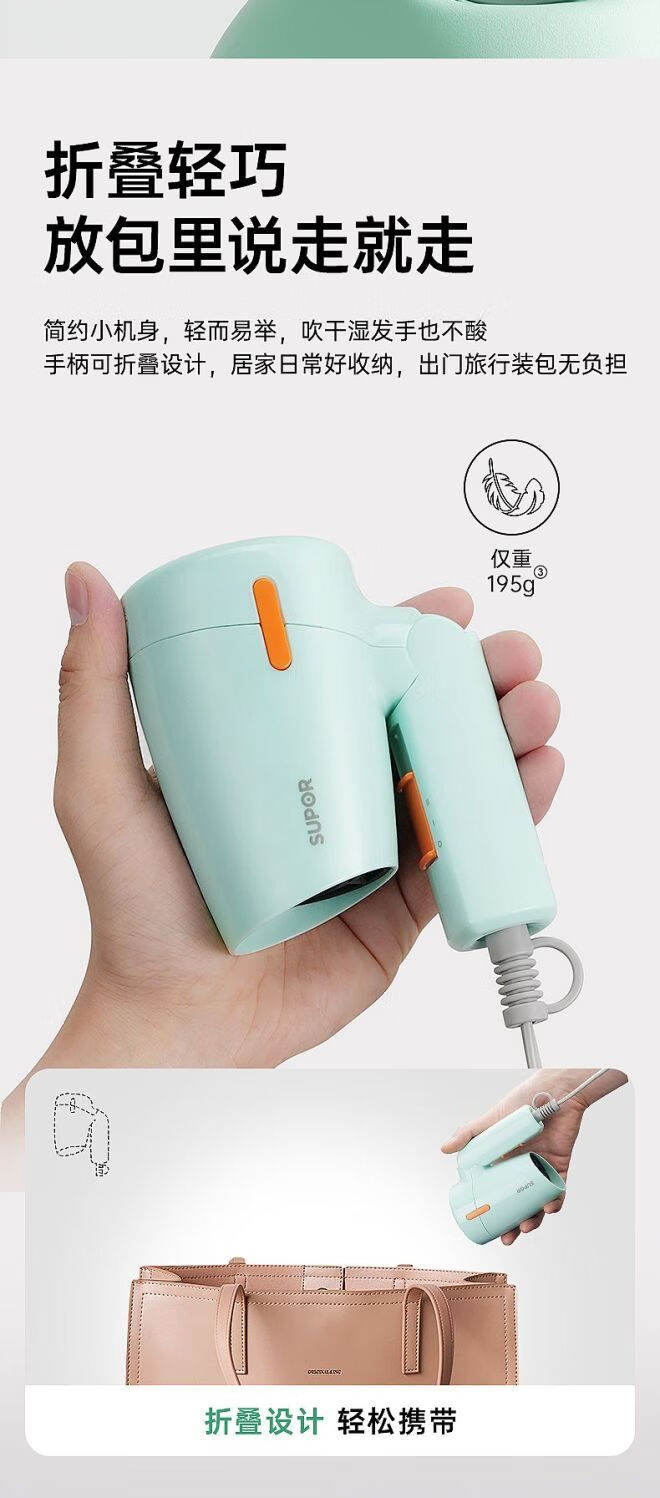 苏泊尔(SUPOR)吹风机家用折叠电吹风大功率风力学生宿舍便携旅行速干护发 F850
