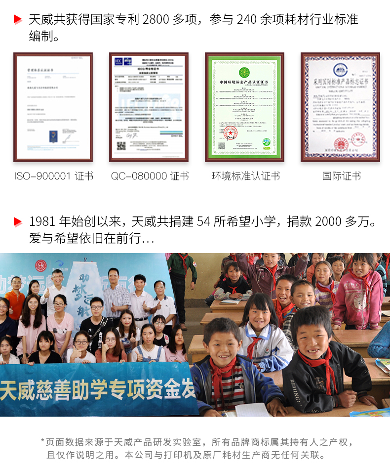 - 天威耗材始于1981年,主营硒鼓、墨盒、色带等办公耗材商品,中国知名通用打印耗材倡导者和生产商。