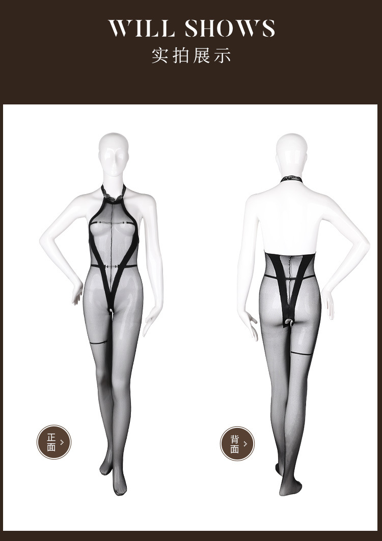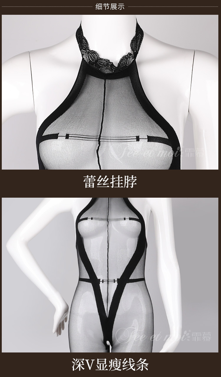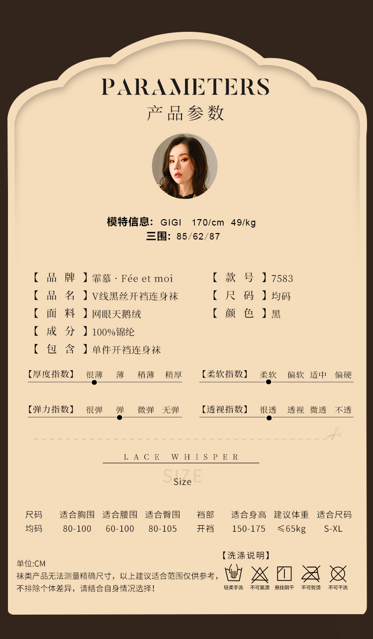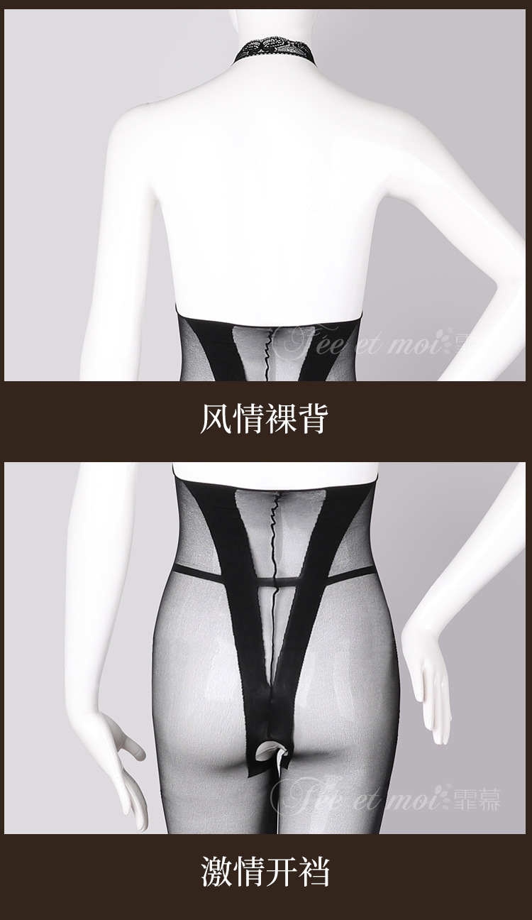 【情趣内衣】霏慕V线黑丝开裆连身丝袜7583