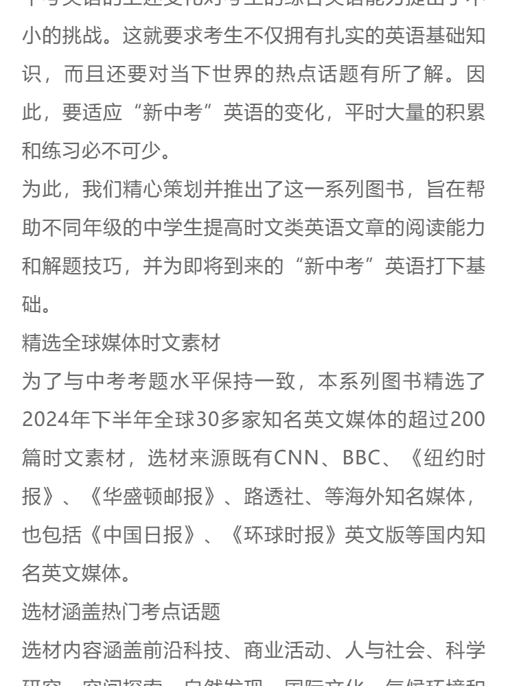 同源英语时文上分练 同源英语时文上分练 听力+阅读7、8年级中考