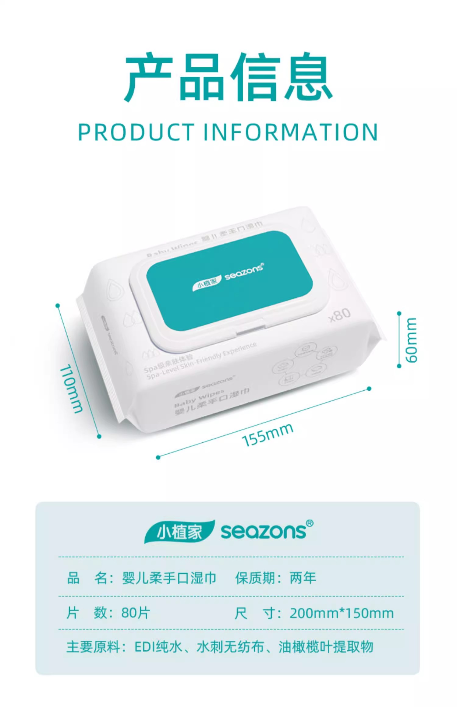 小植家婴儿手口湿巾 20*15CM*80片/包