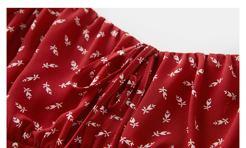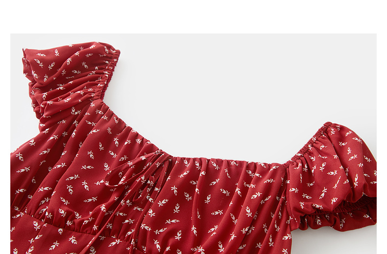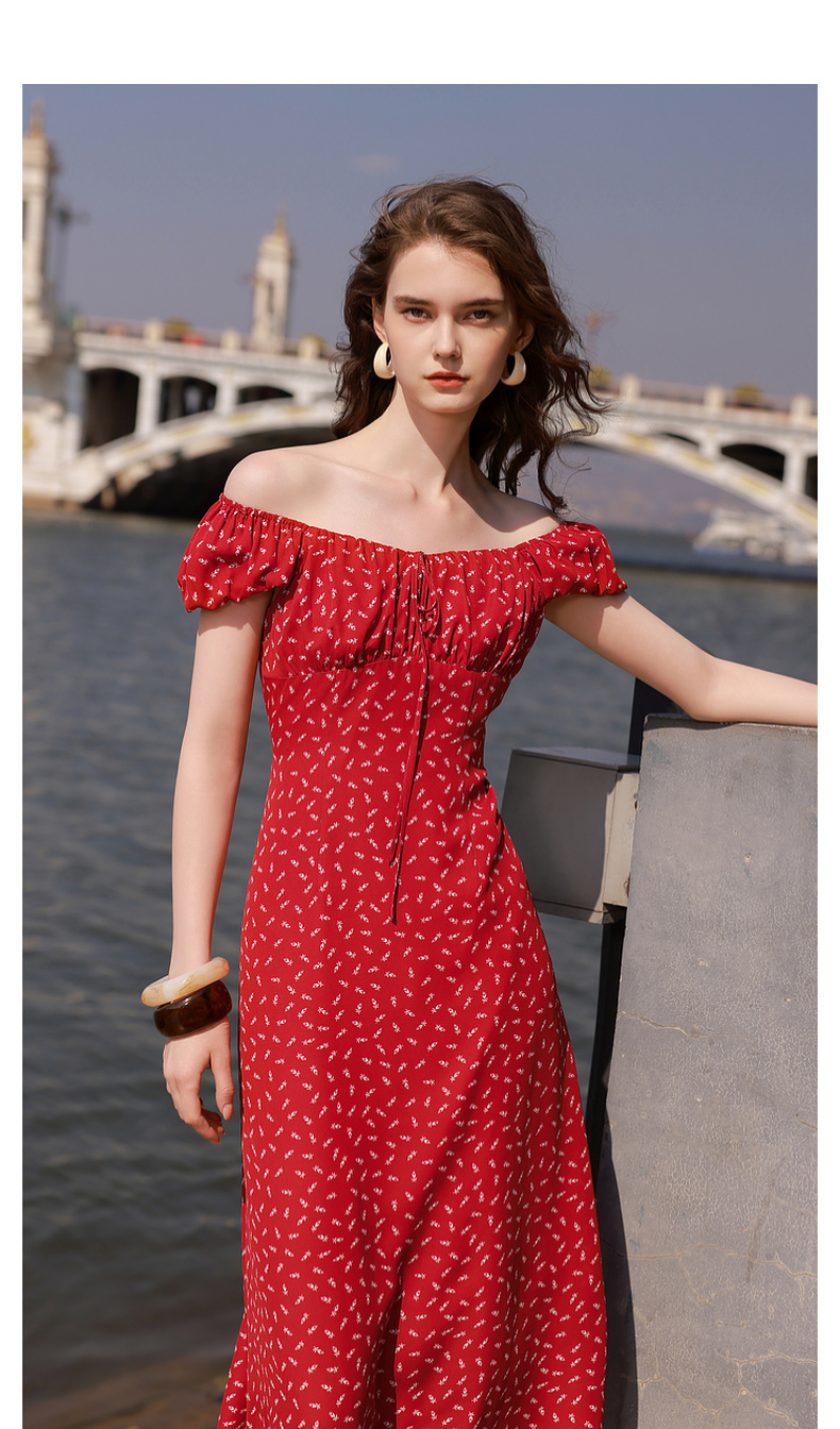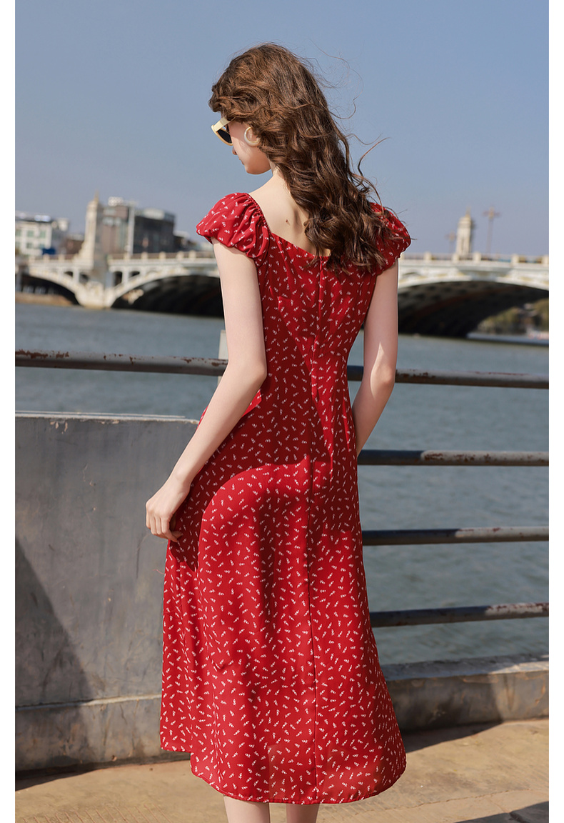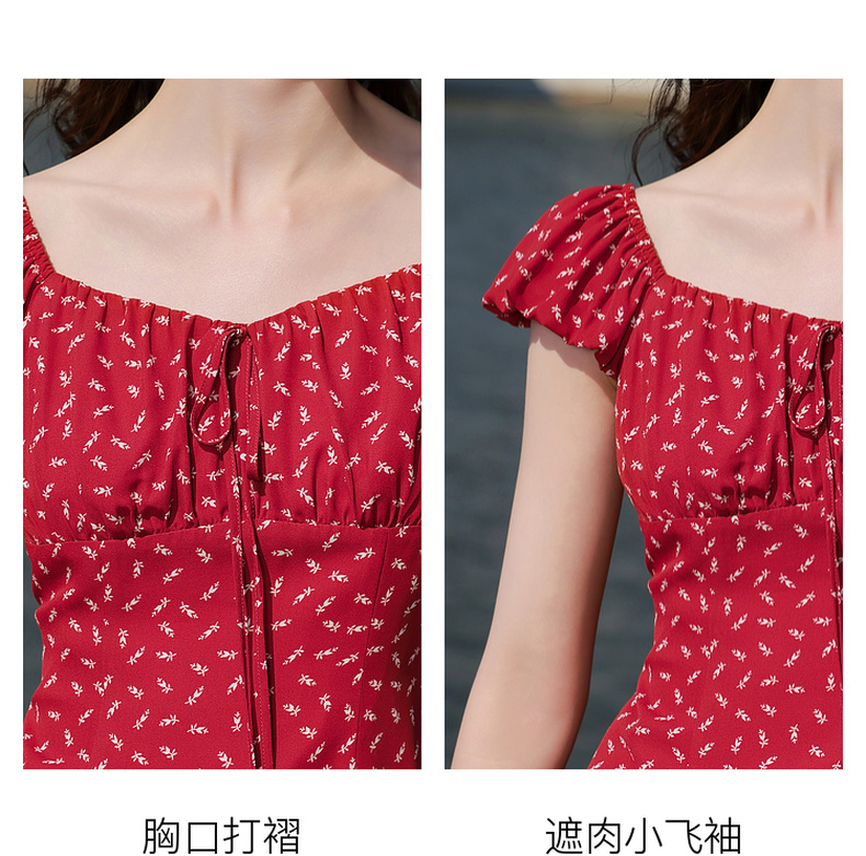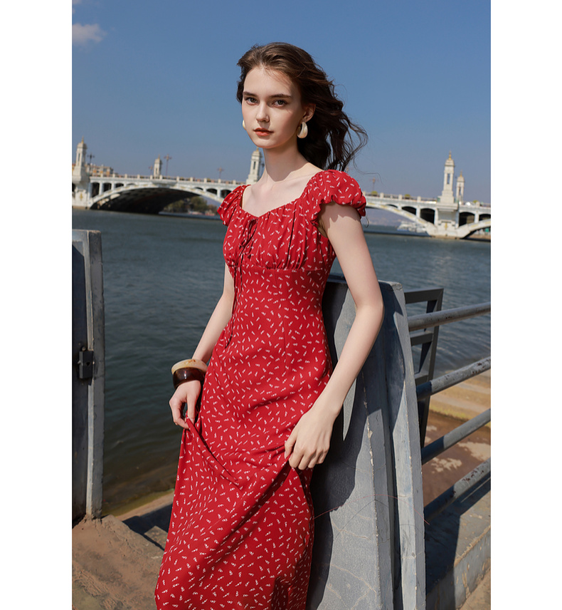 三彩2025夏季新款法式连衣裙方领系带收腰A字裙飞飞袖长裙M