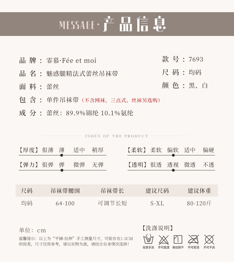 【霏慕】魅惑腿精法式蕾丝吊袜带7693情趣内衣性感露臀束腰可调