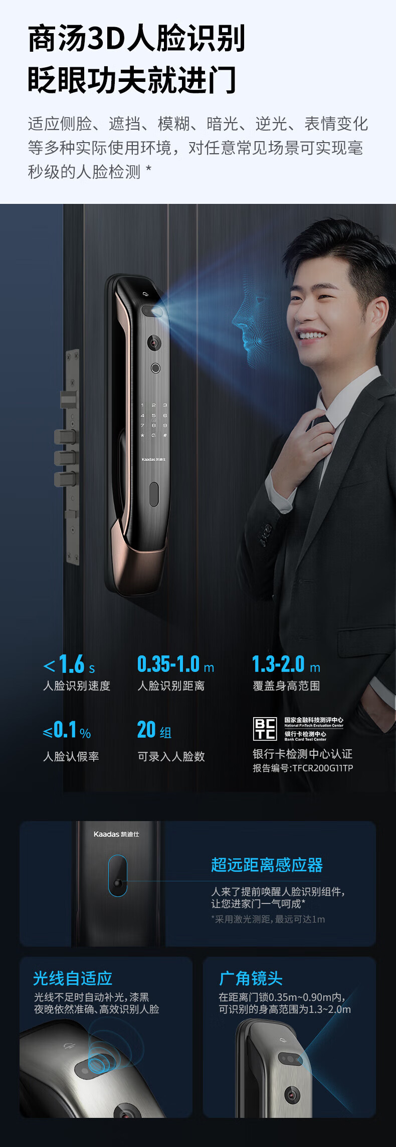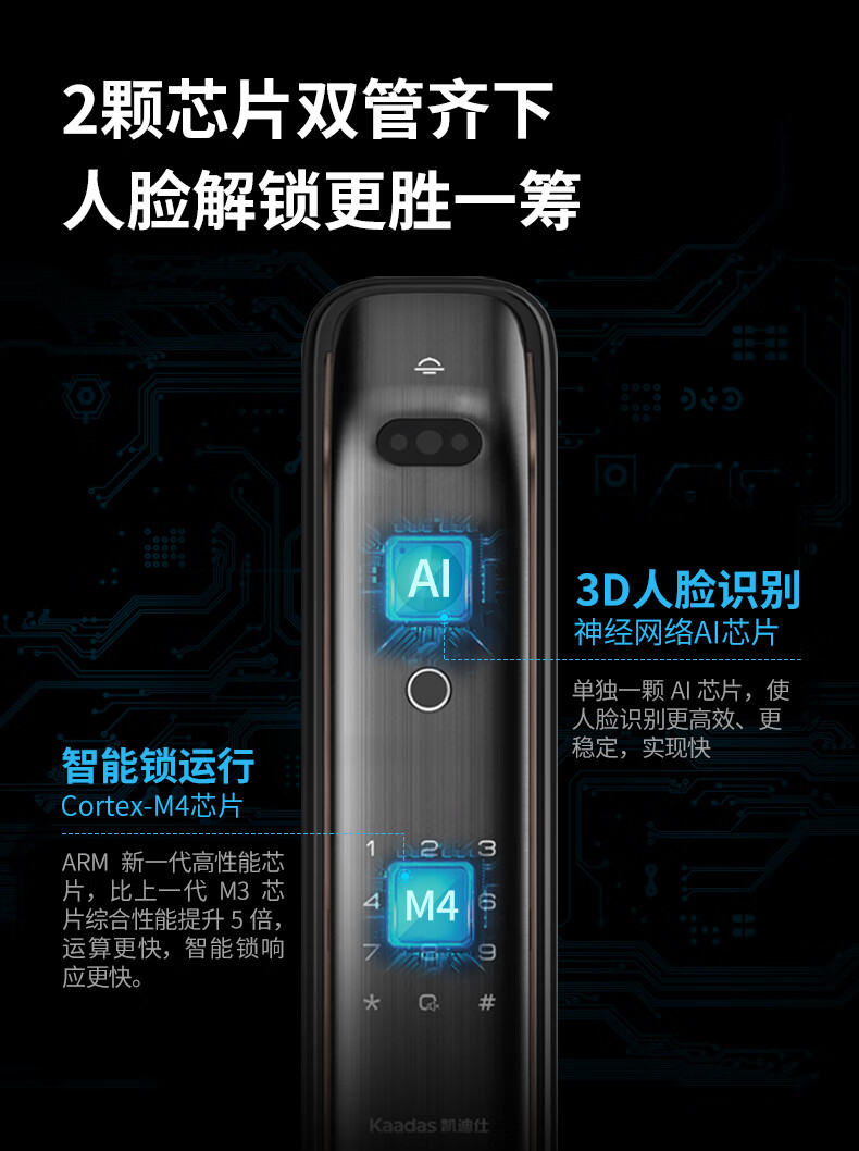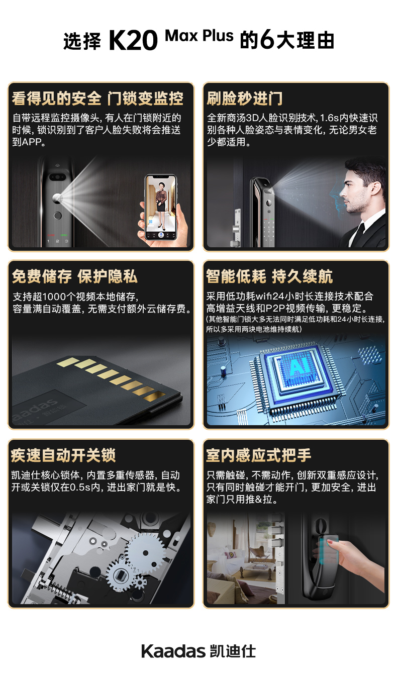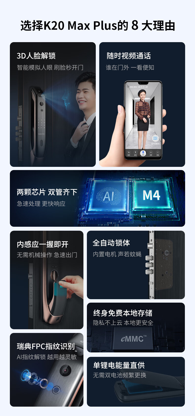 凯迪仕(KAADAS) K20 Max Plus 智能锁指纹锁家用防盗3D人脸识别可视猫眼密码锁 红古铜