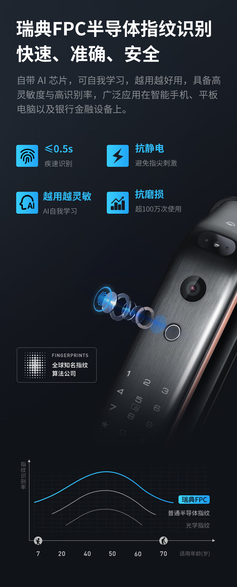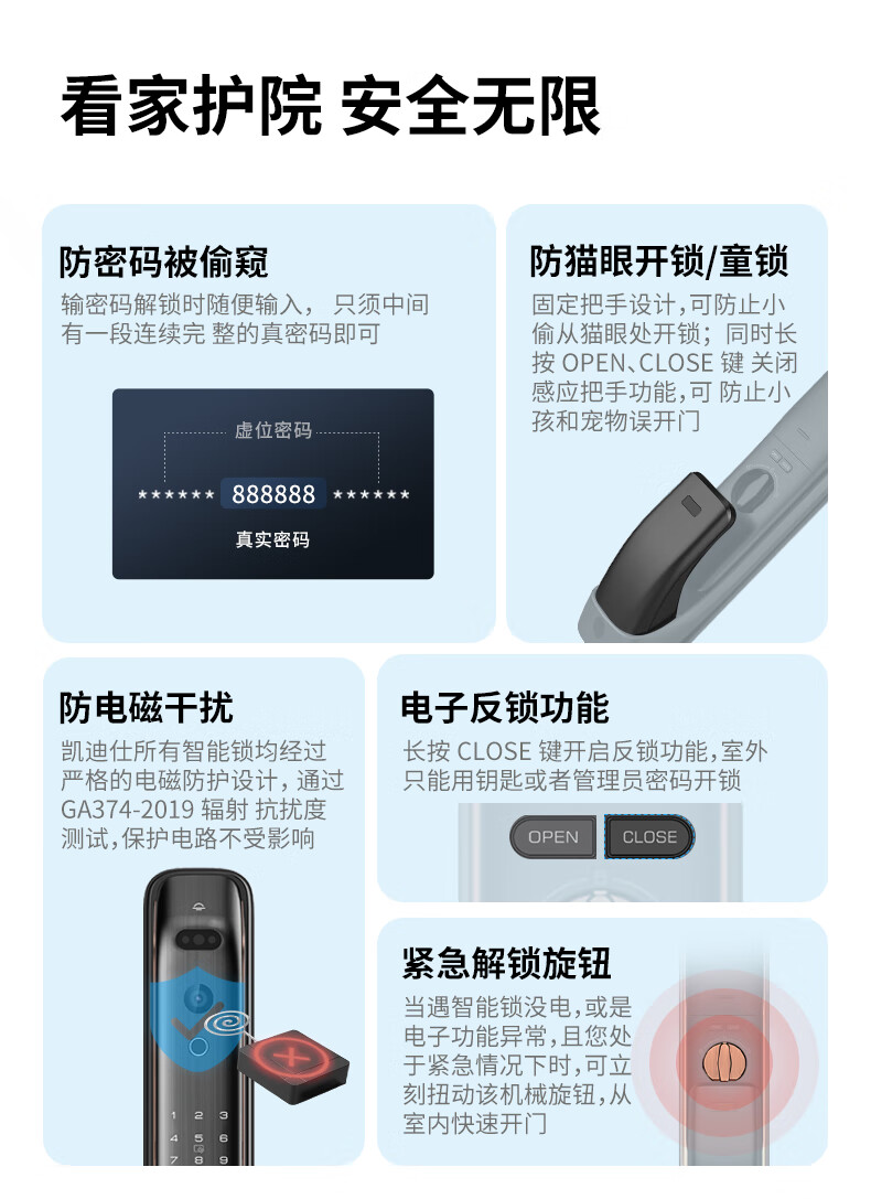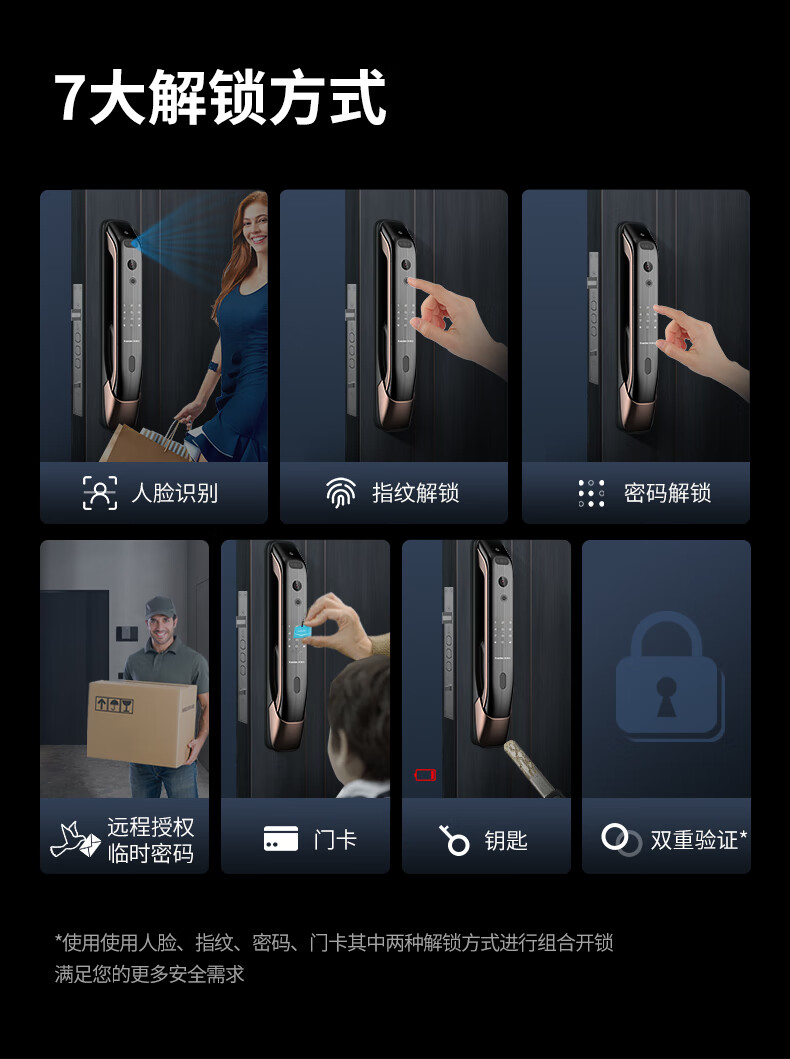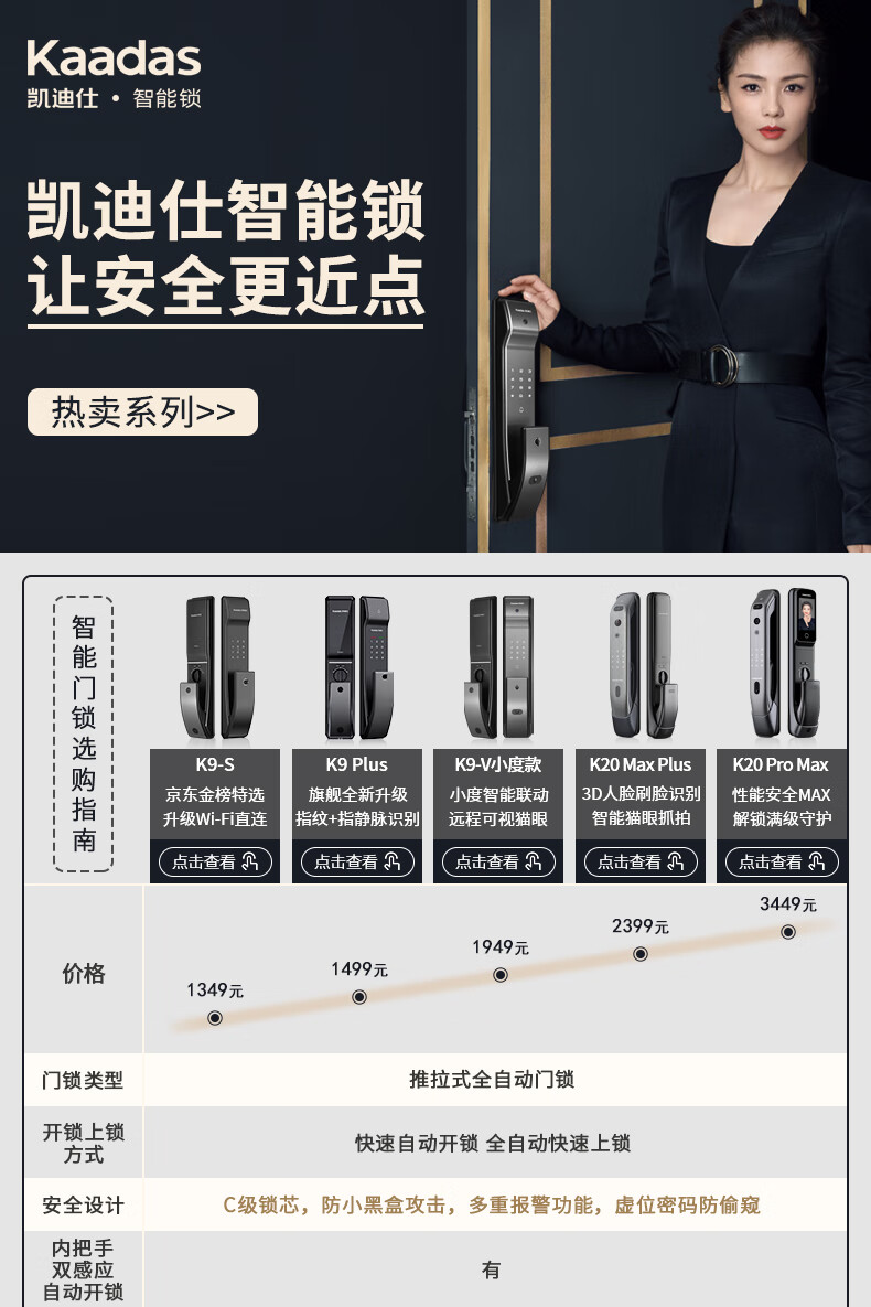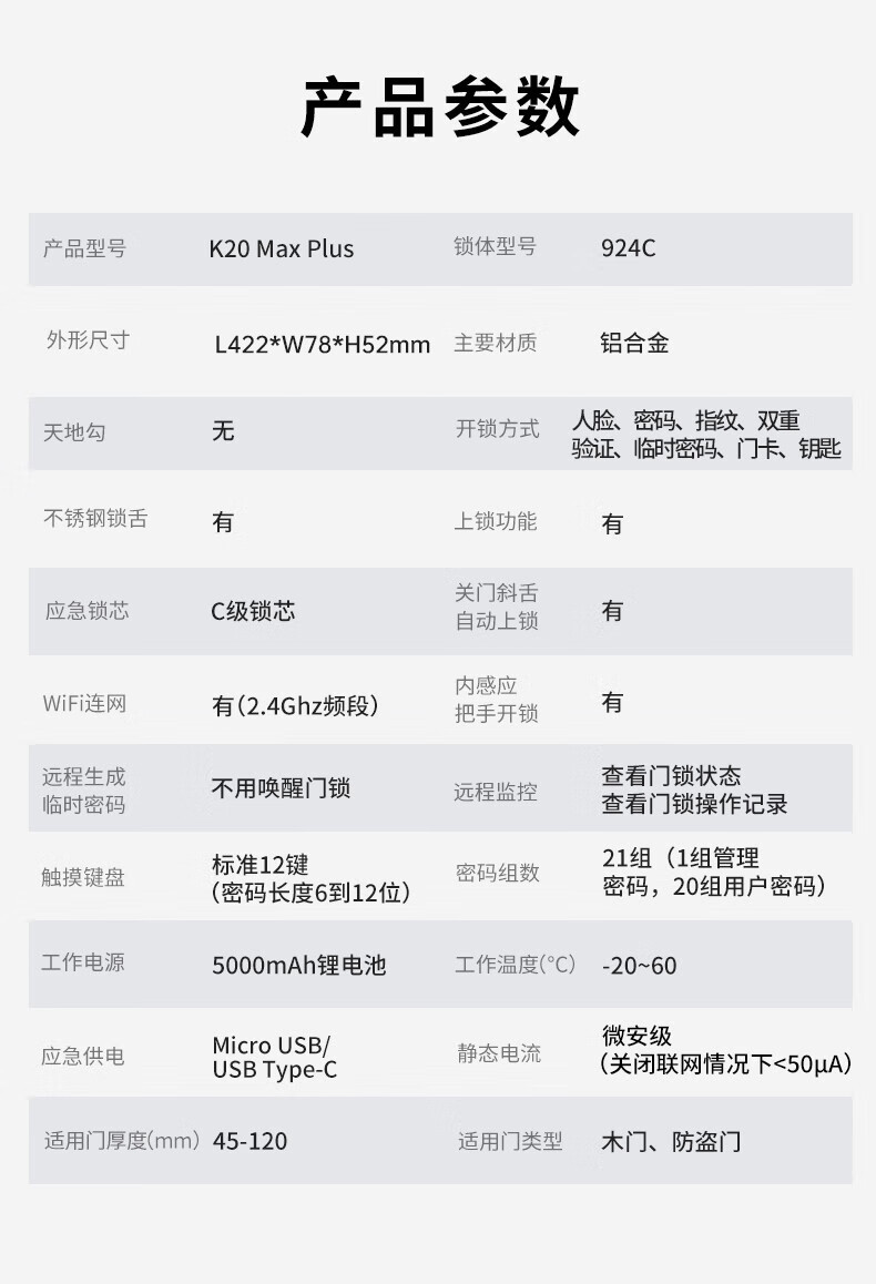 凯迪仕(KAADAS) K20 Max Plus 智能锁指纹锁家用防盗3D人脸识别可视猫眼密码锁 红古铜