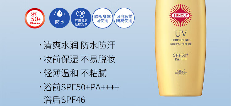 SUNCUT高丝防晒防水KOSE防晒乳/喷雾户外出行 【全网热销】防水小金瓶啫喱100g_BYY