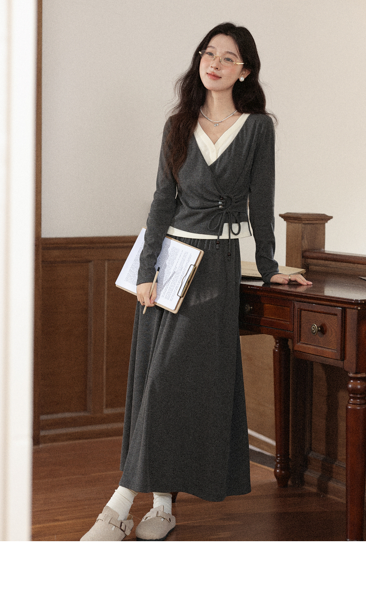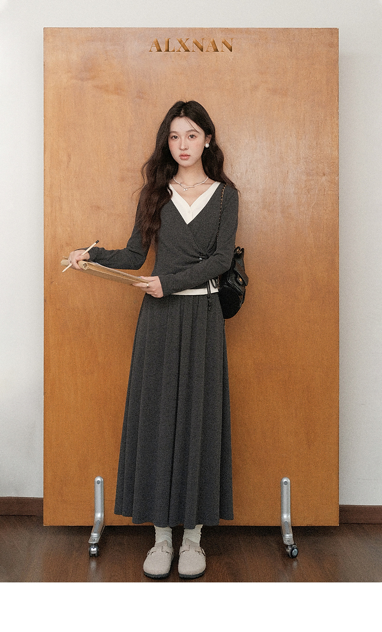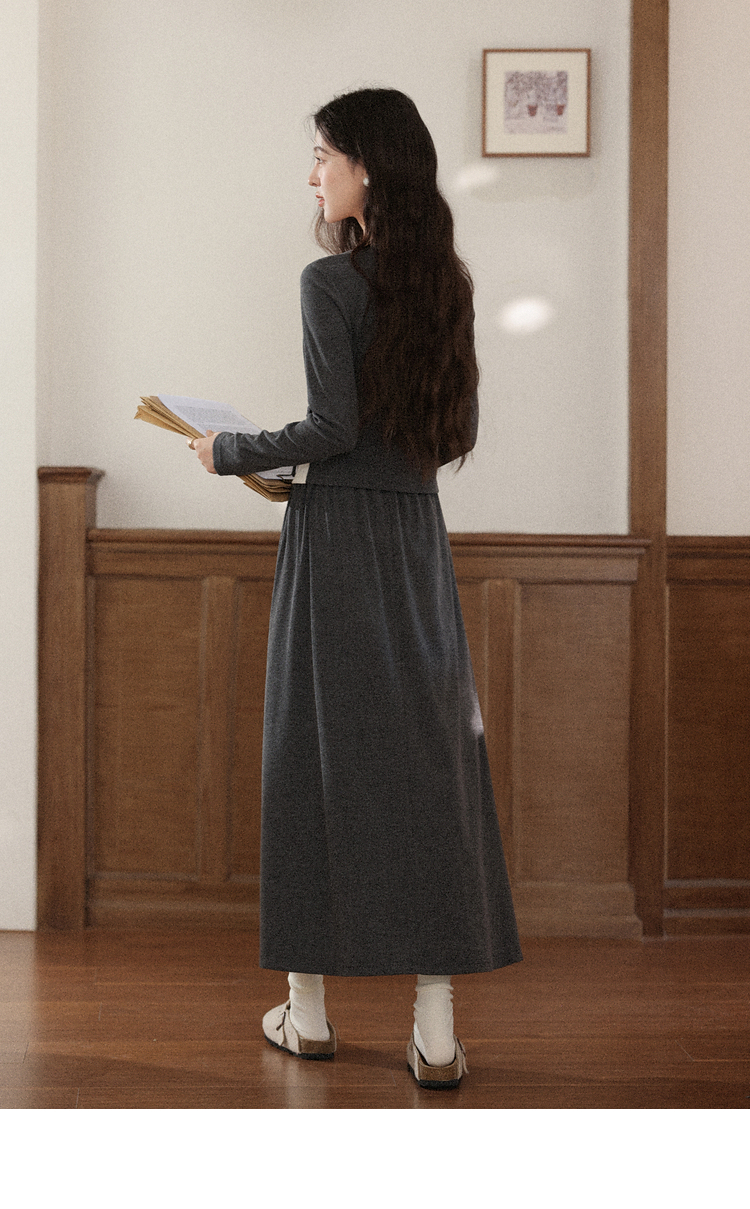 鹿向南「油画风铃」灰色宽松显瘦休闲半身裙秋季新款优雅长裙女士