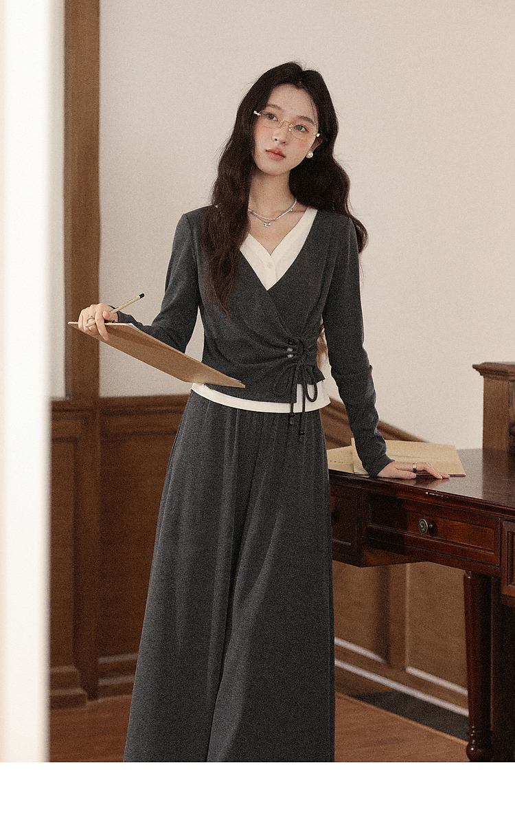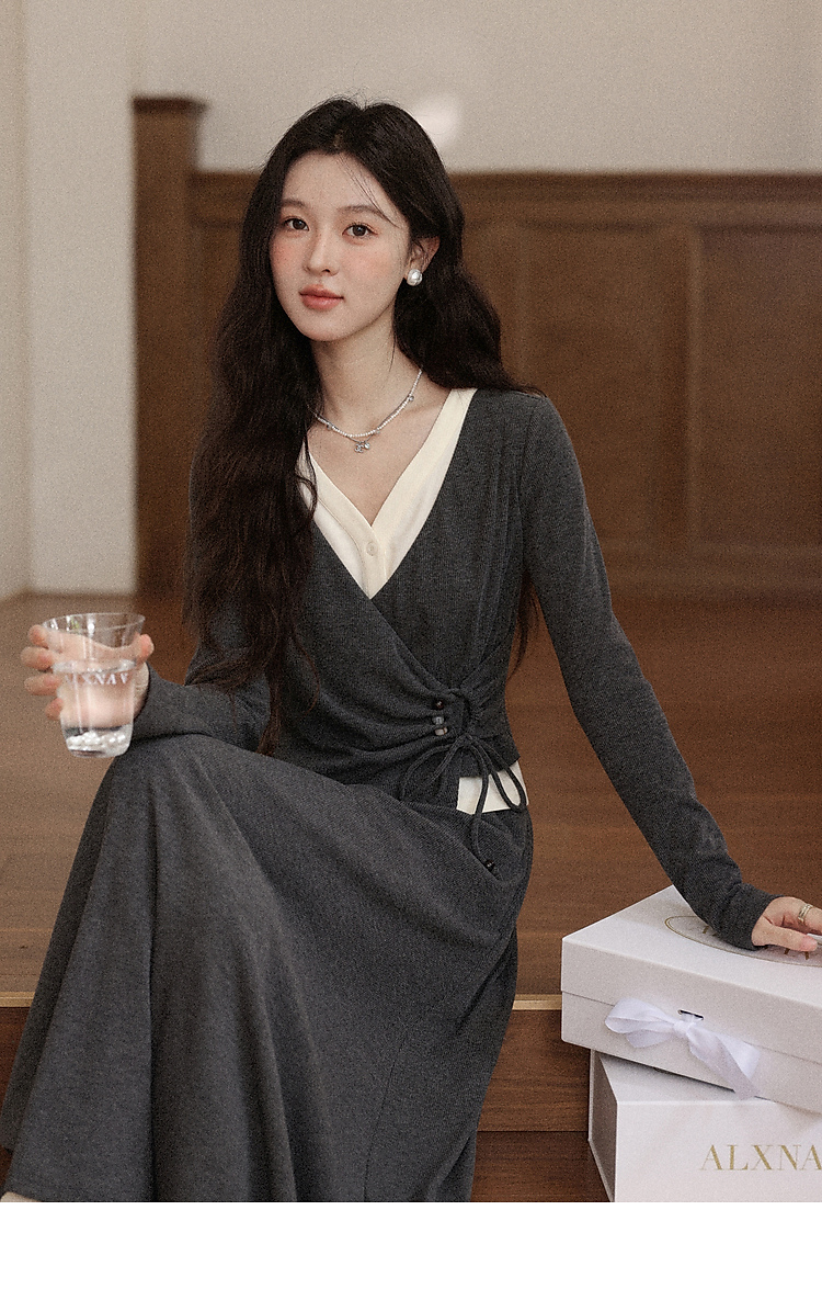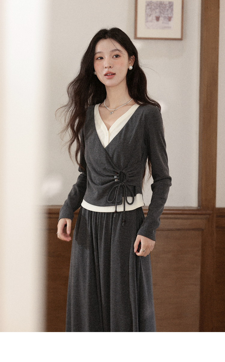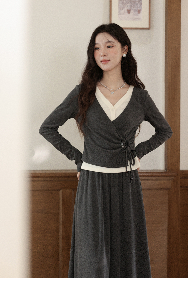 鹿向南「油画风铃」灰色宽松显瘦休闲半身裙秋季新款优雅长裙女士