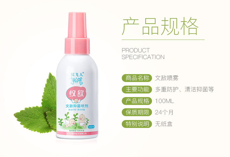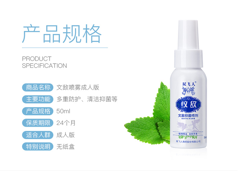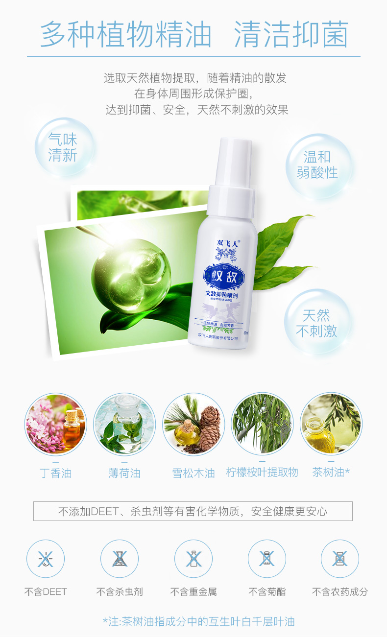 【官方直发】双飞人文敌抑菌喷剂 蚊子驱赶水清凉植物精油家用常备户外不叮神器喷雾液
