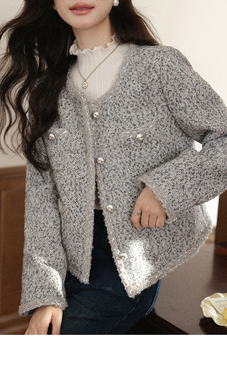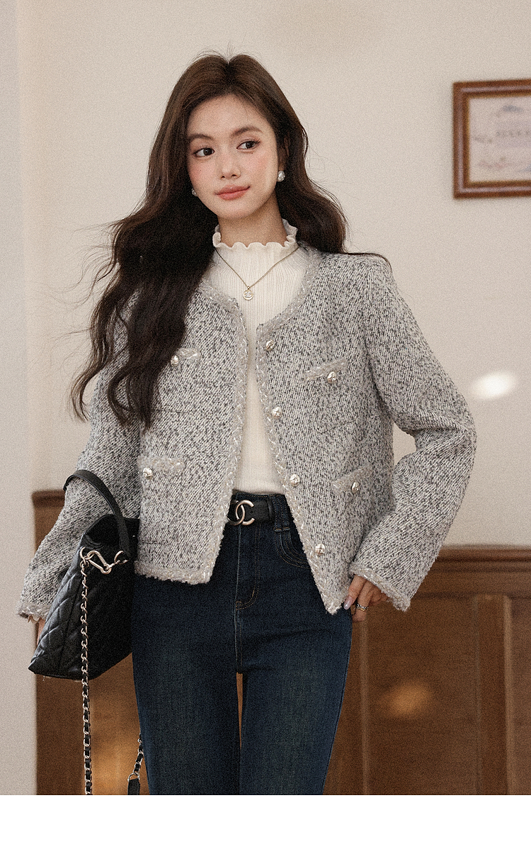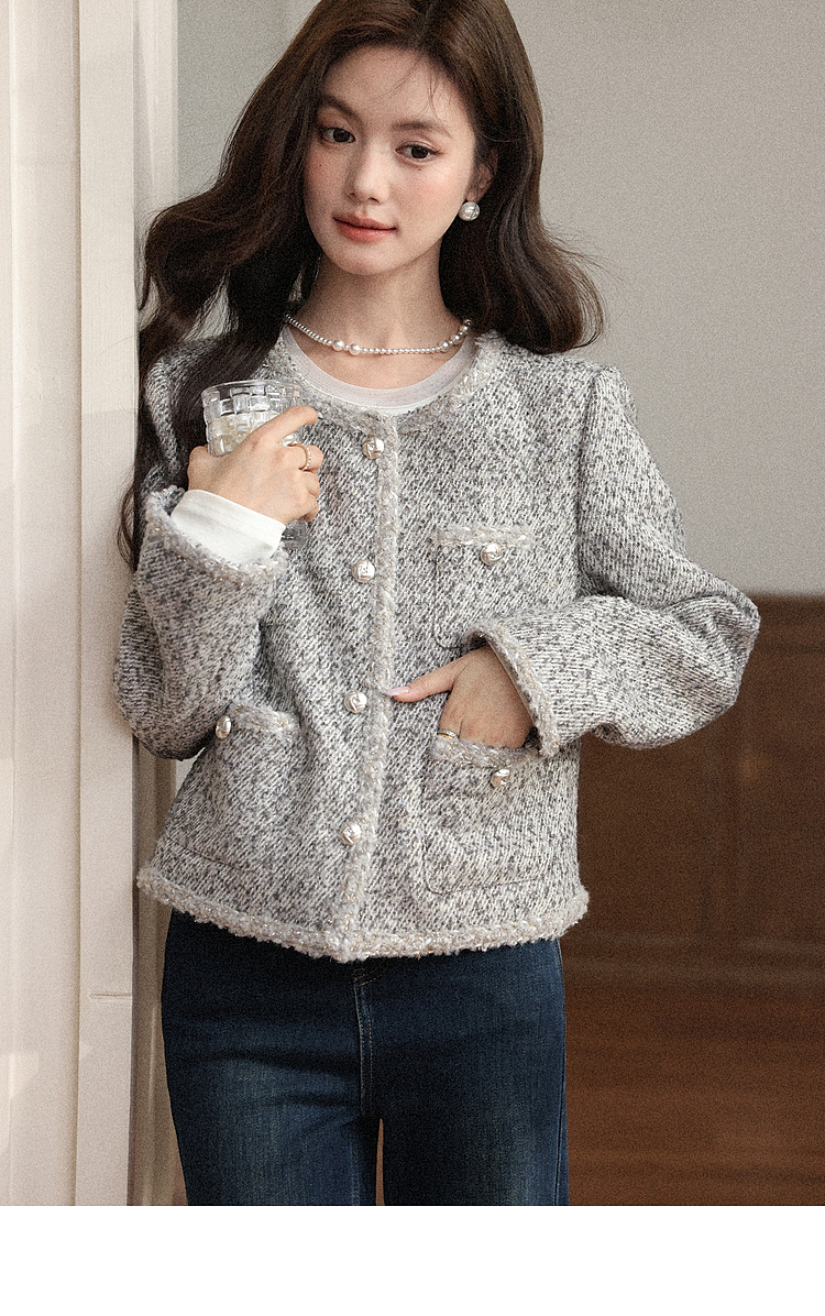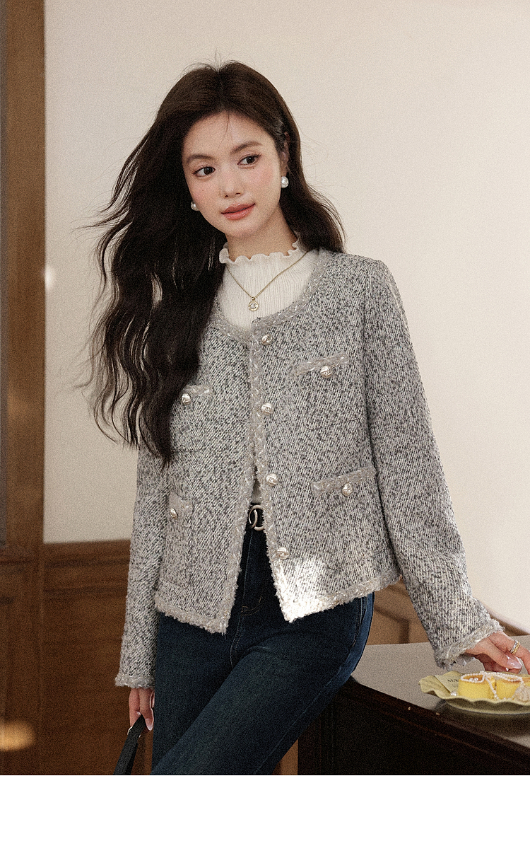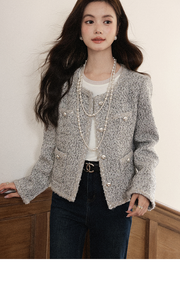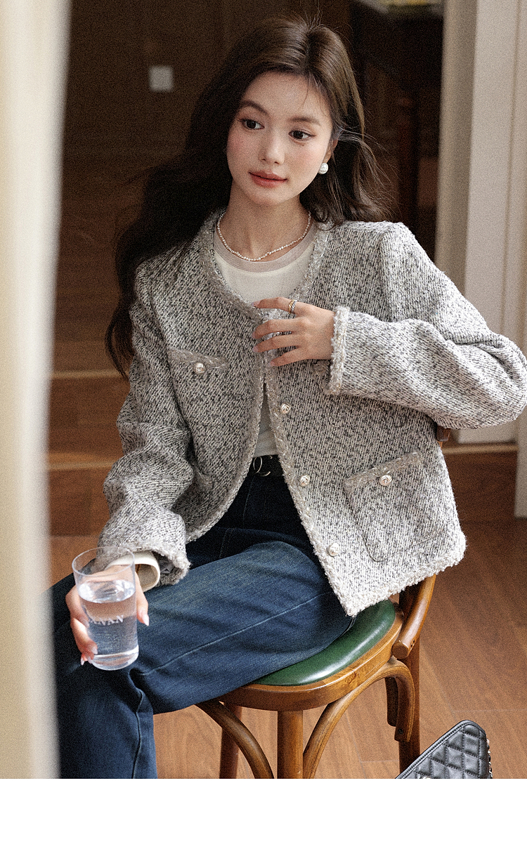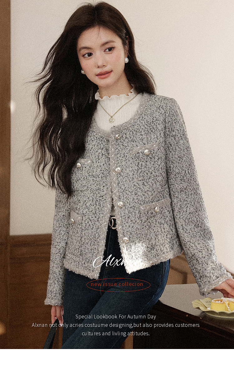 鹿向南「米莲栗绒」法式小香风灰色短外套女秋小个子气质显瘦上衣