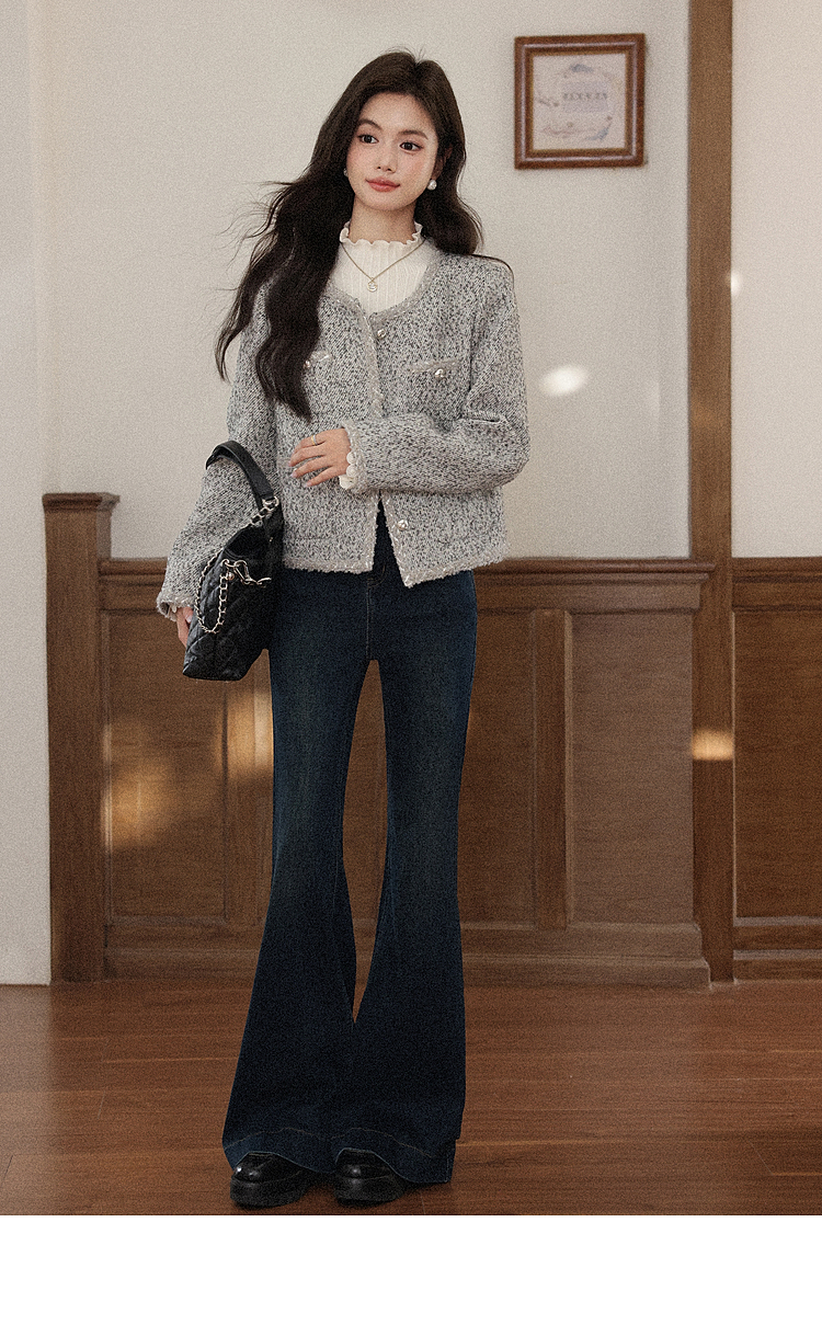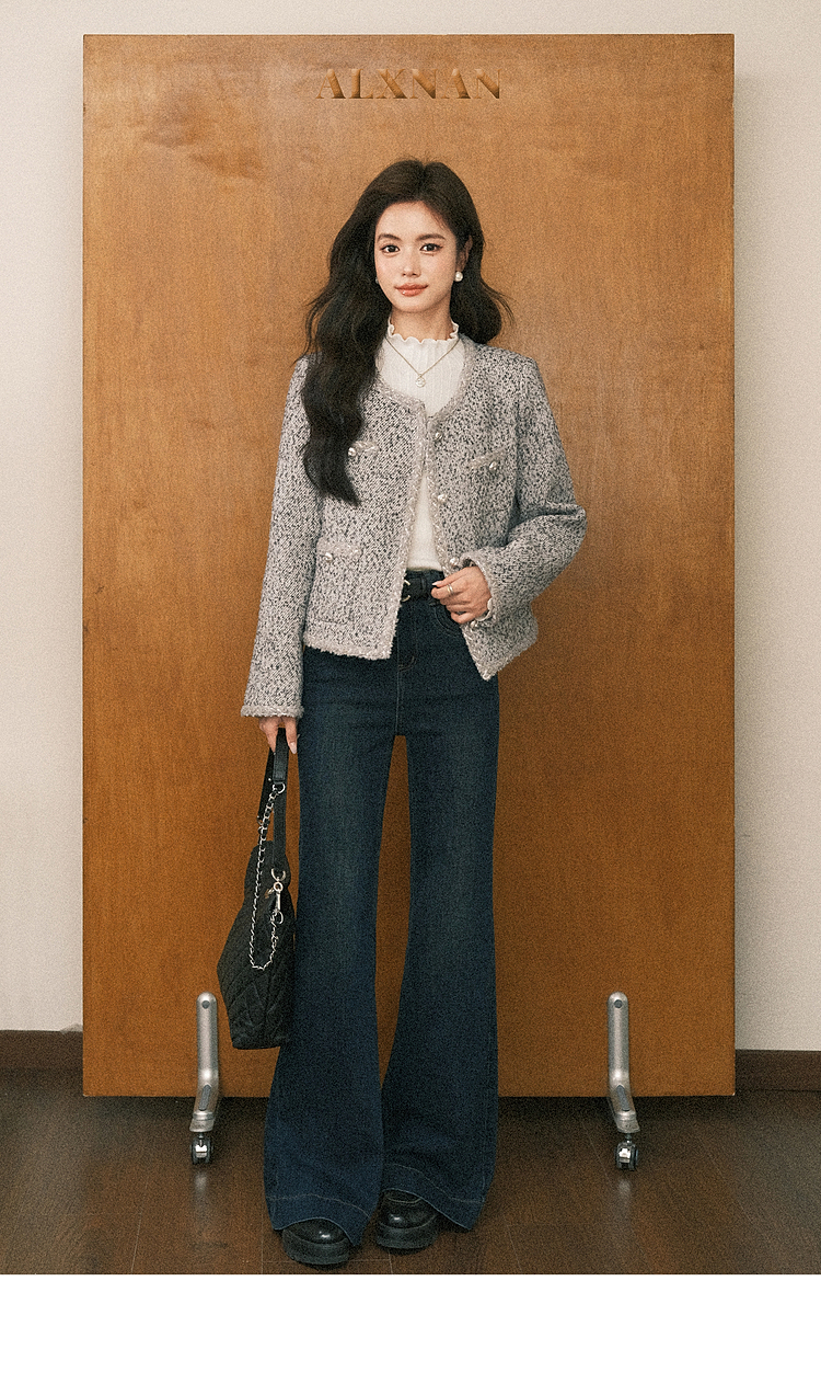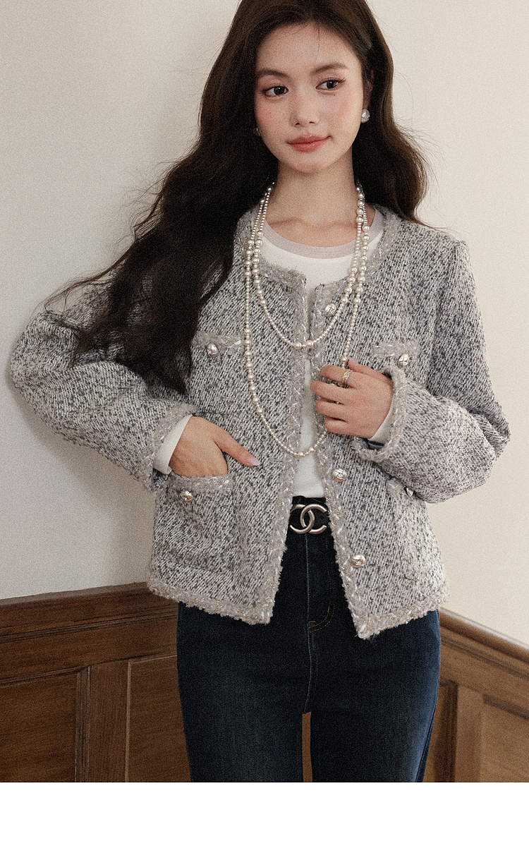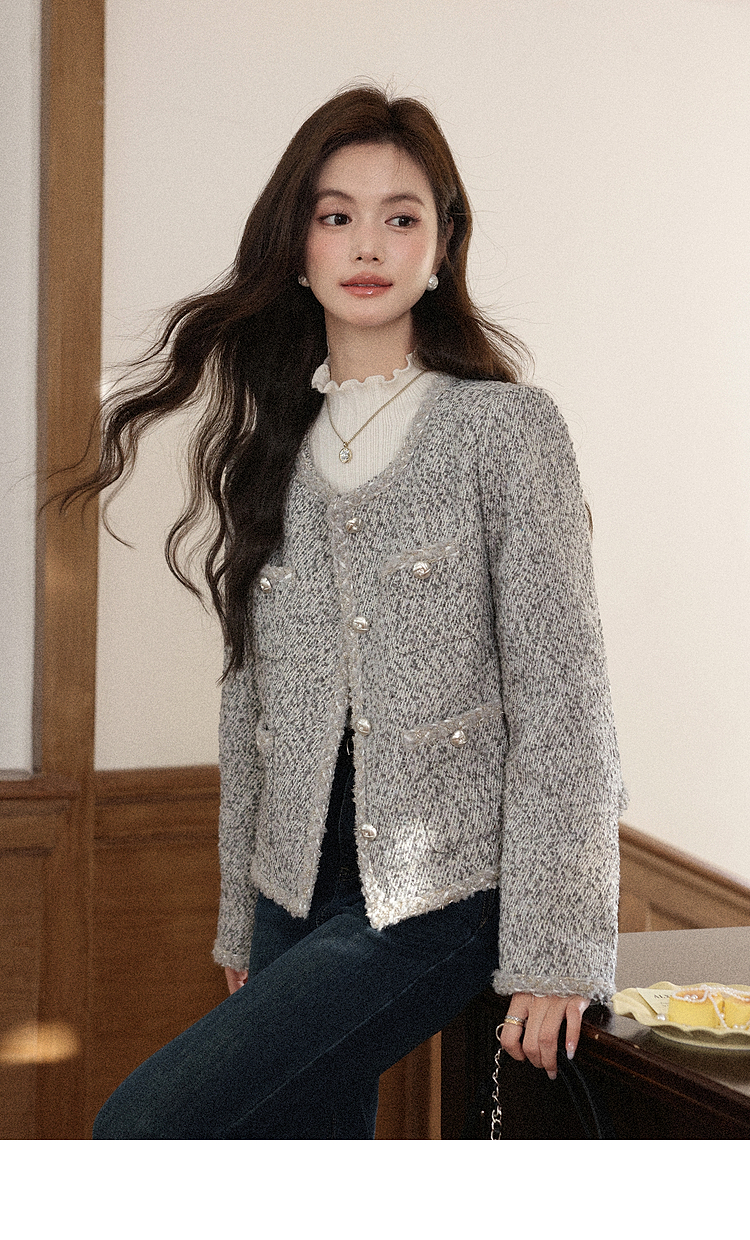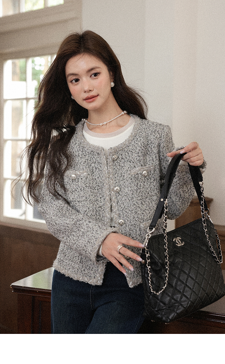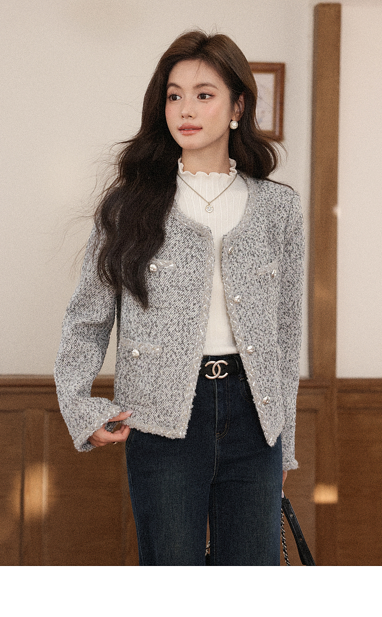 鹿向南「米莲栗绒」法式小香风灰色短外套女秋小个子气质显瘦上衣