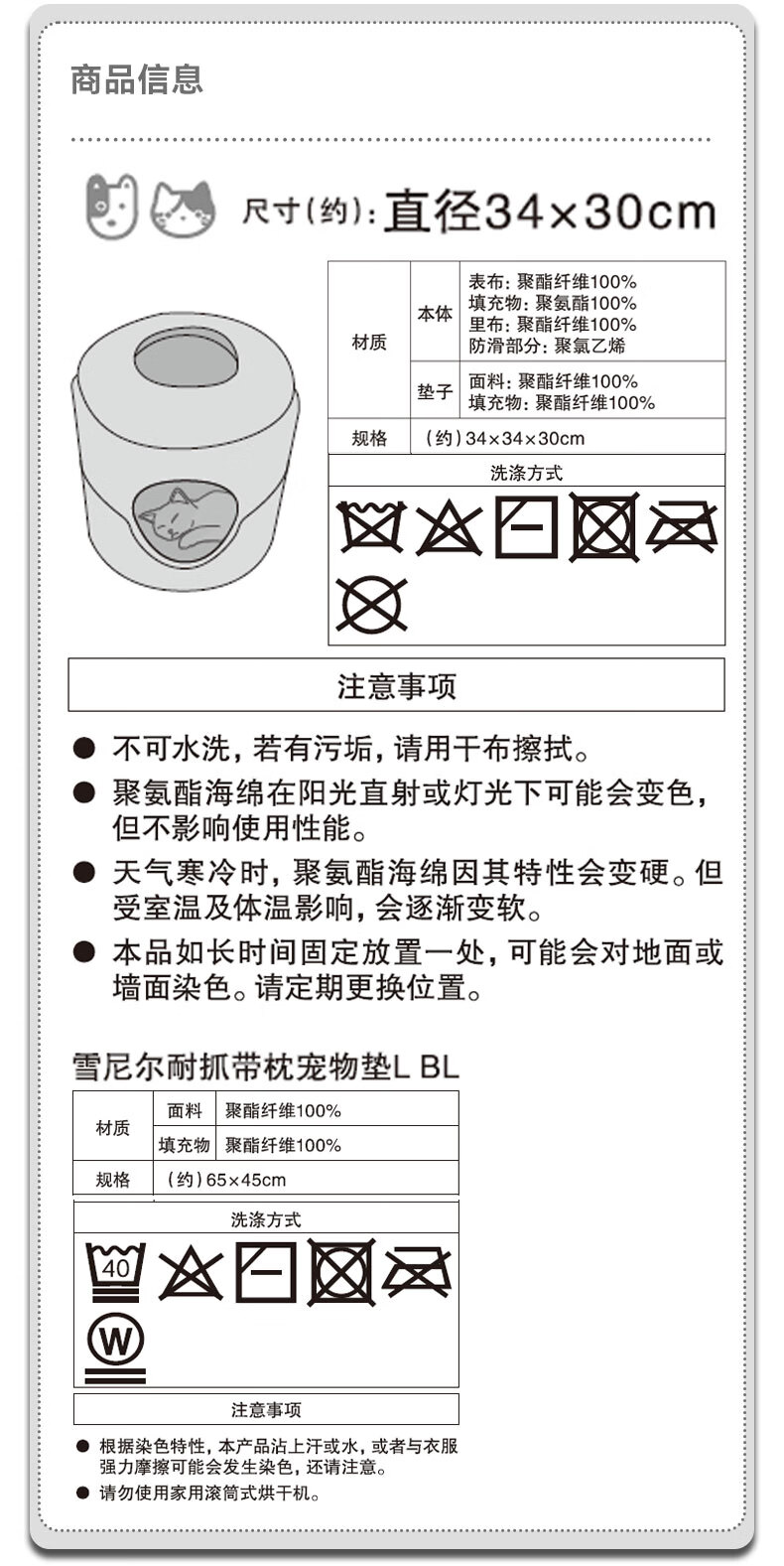 猫窝狗窝通用四季可用雪尼尔耐抓宠物窝带枕宠物垫