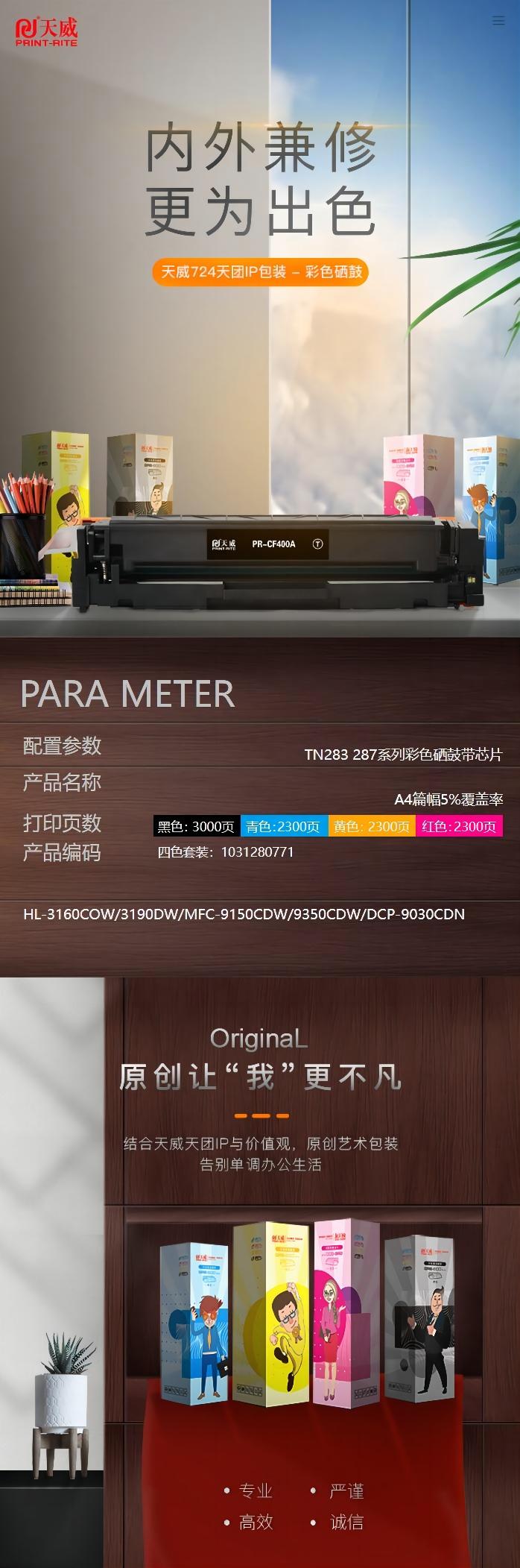 天威 TN-287/283粉盒 适用兄弟HL-3160CDW 3190DW墨粉 DCP-9150CDW 9350CDW DCP 9030CDN 打印机墨盒