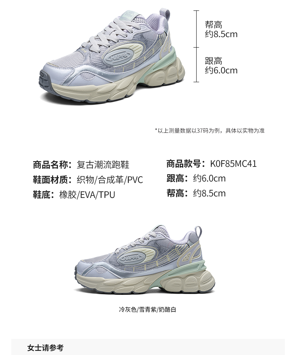 Kappa 2025秋季新款 厚底增高复古老爹鞋 跑鞋 女款K0F85MC41