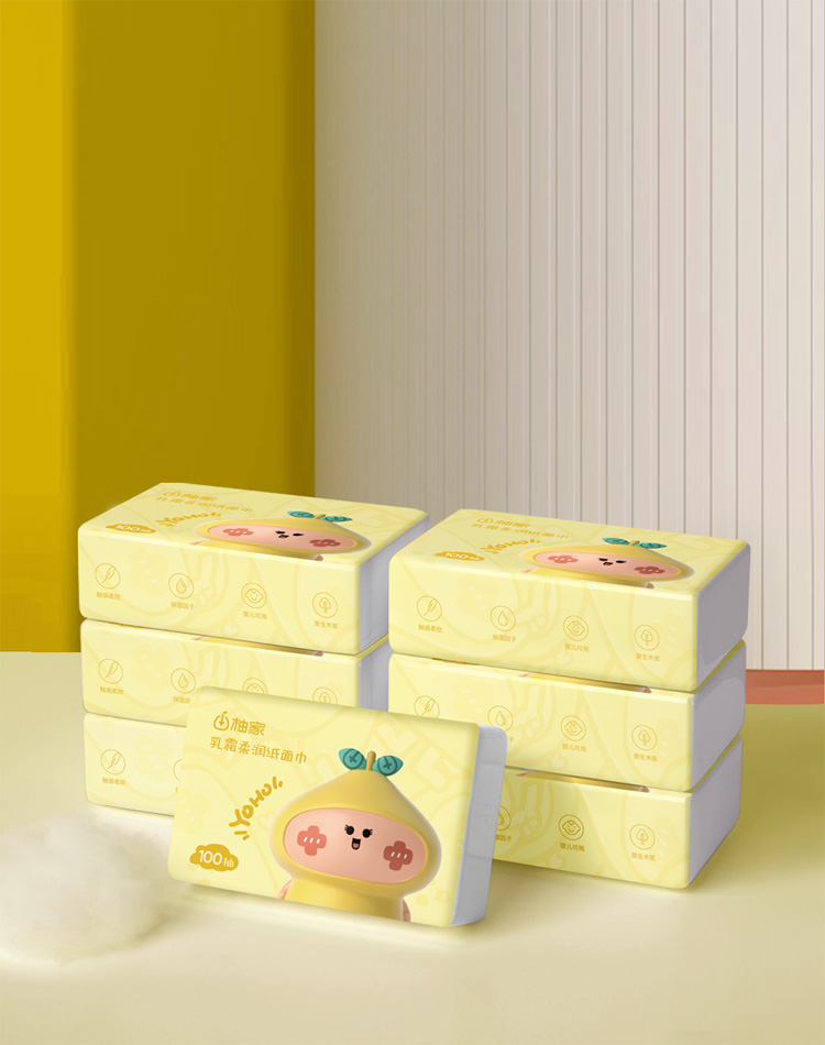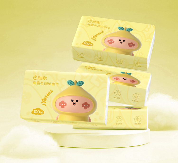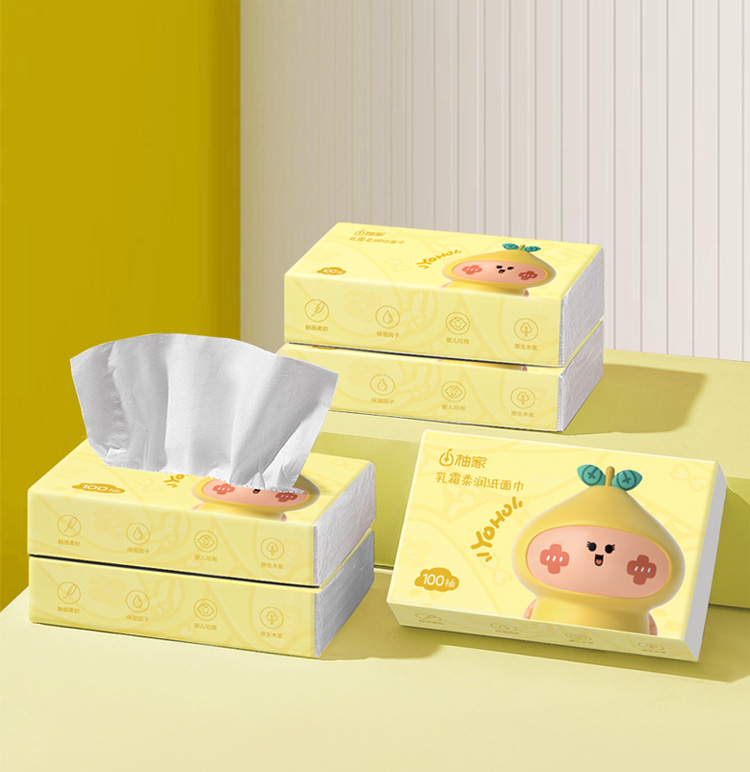 【50积分+14.9元】柚家 乳霜柔润纸面巾 100抽*4包/箱 柔韧不易破