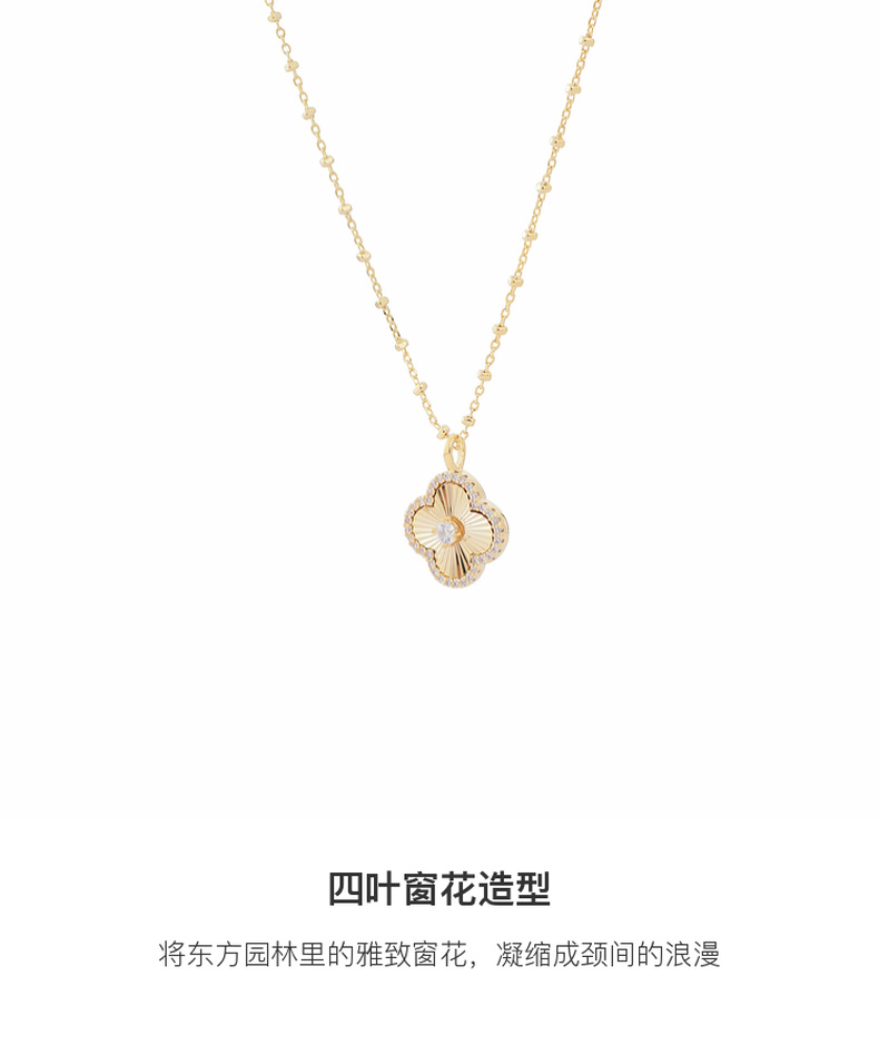 三彩2025新款国风四叶园林窗花项链轻奢锆石车花重工时尚个性通勤
