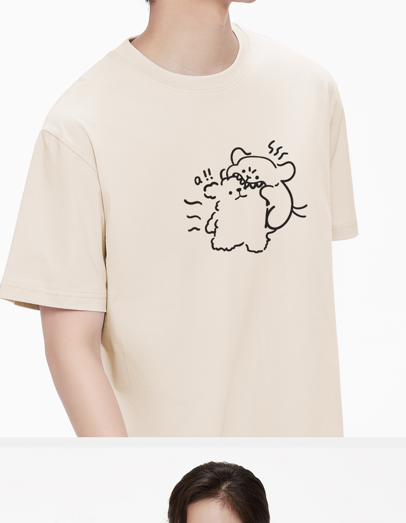 「棉的美学」纯棉百搭春夏T恤纯色可爱生气小狗印花休闲简约短袖~