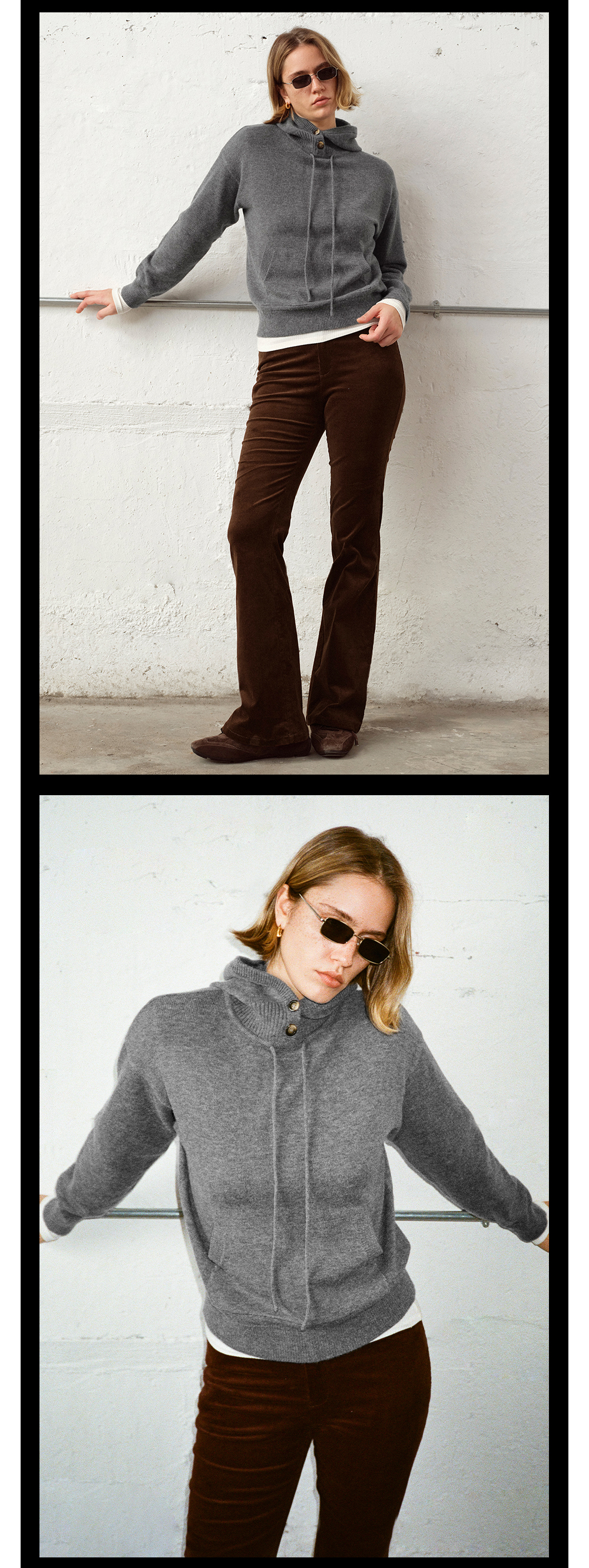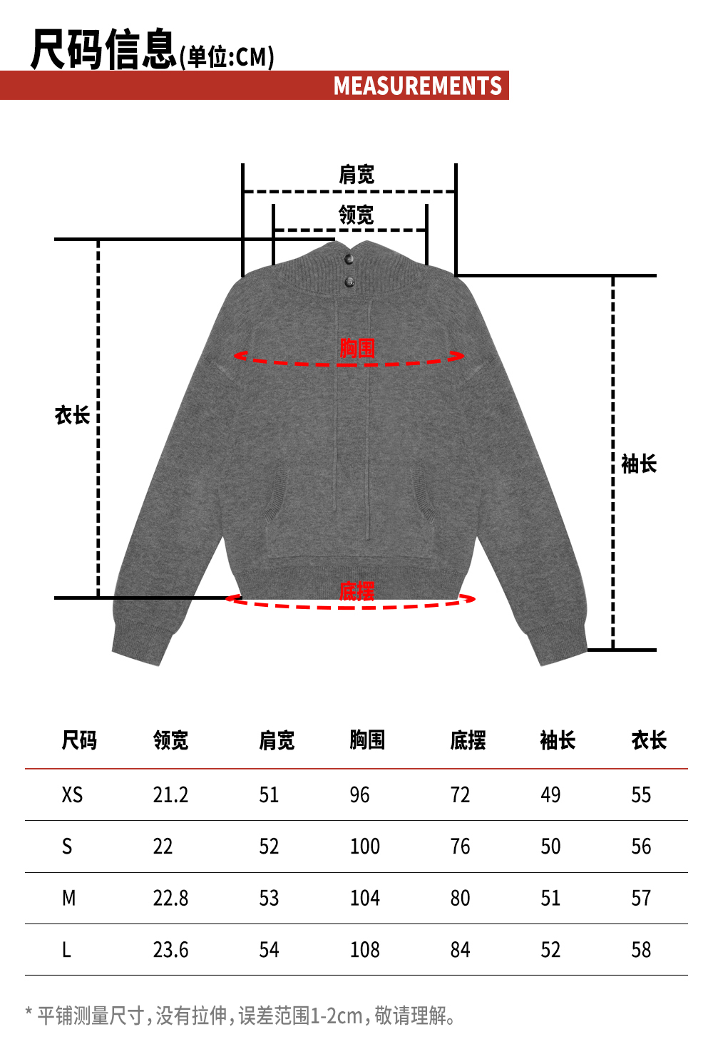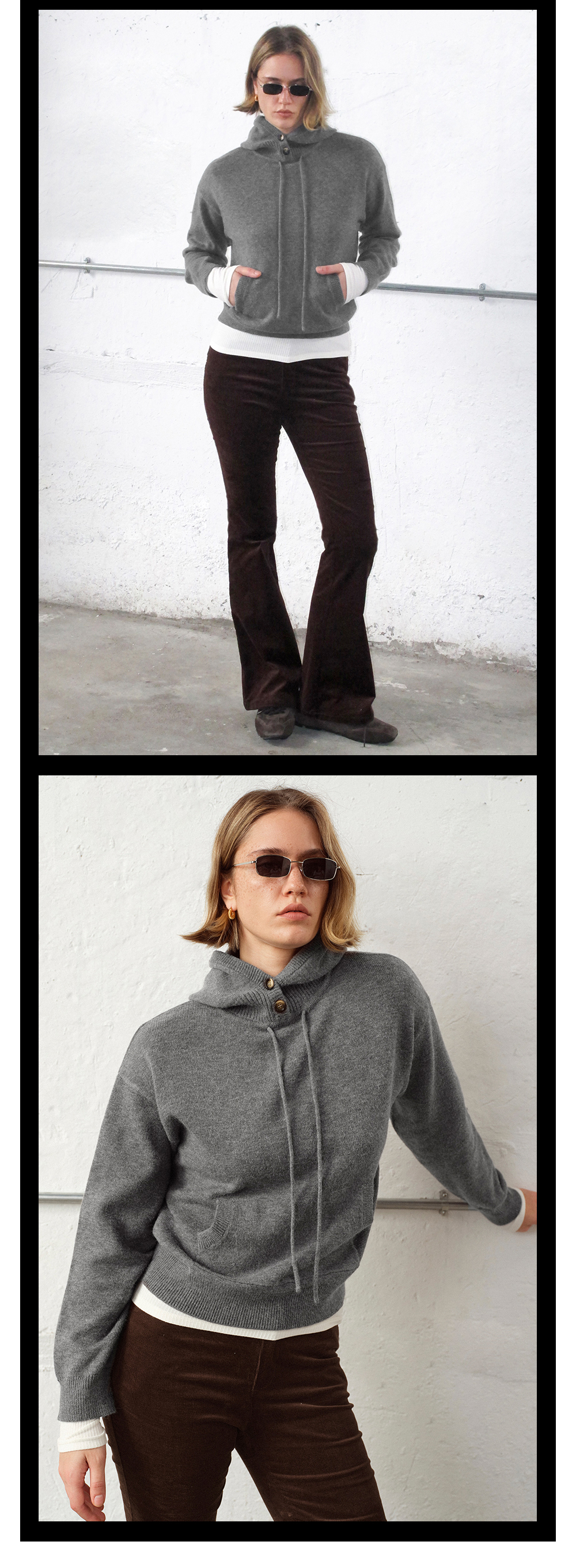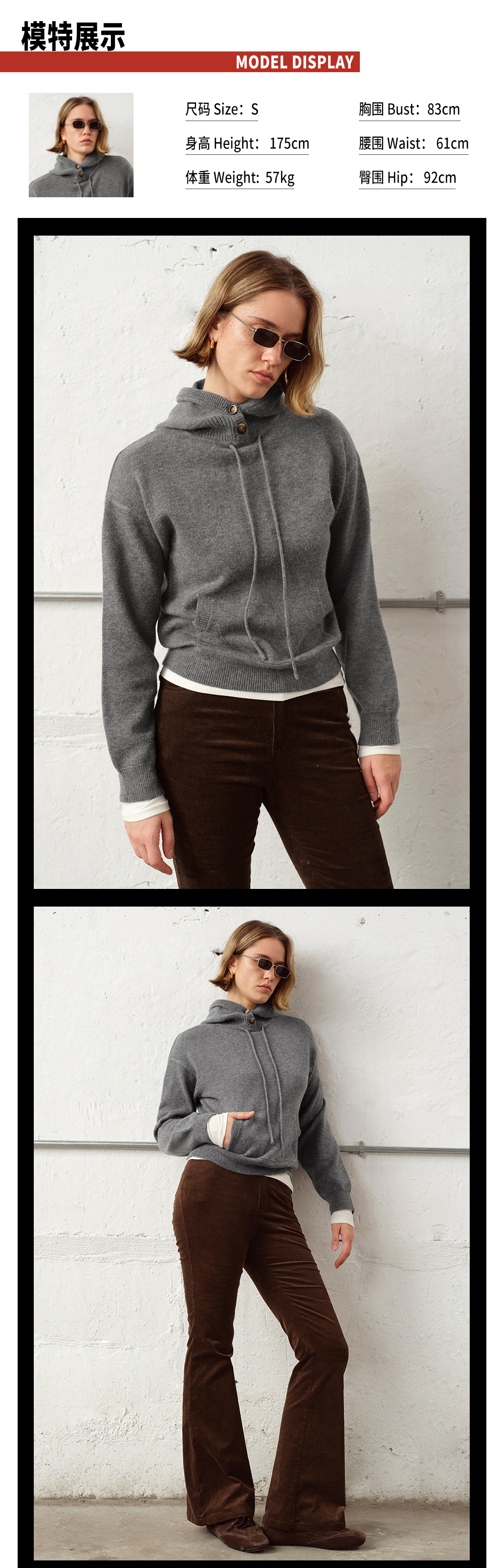 TR她热 闲日序章 灰色针织连帽纽扣抽绳设计感宽松卫衣上衣